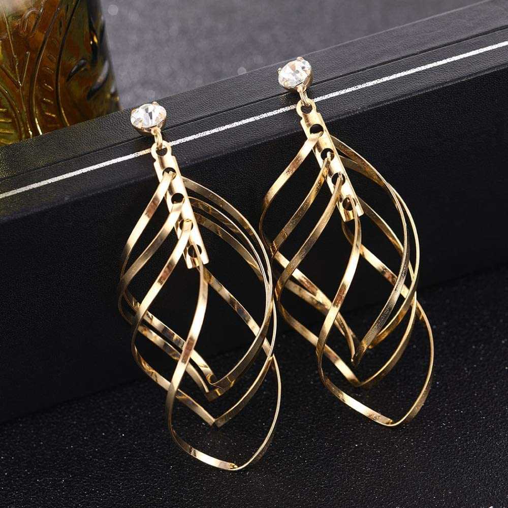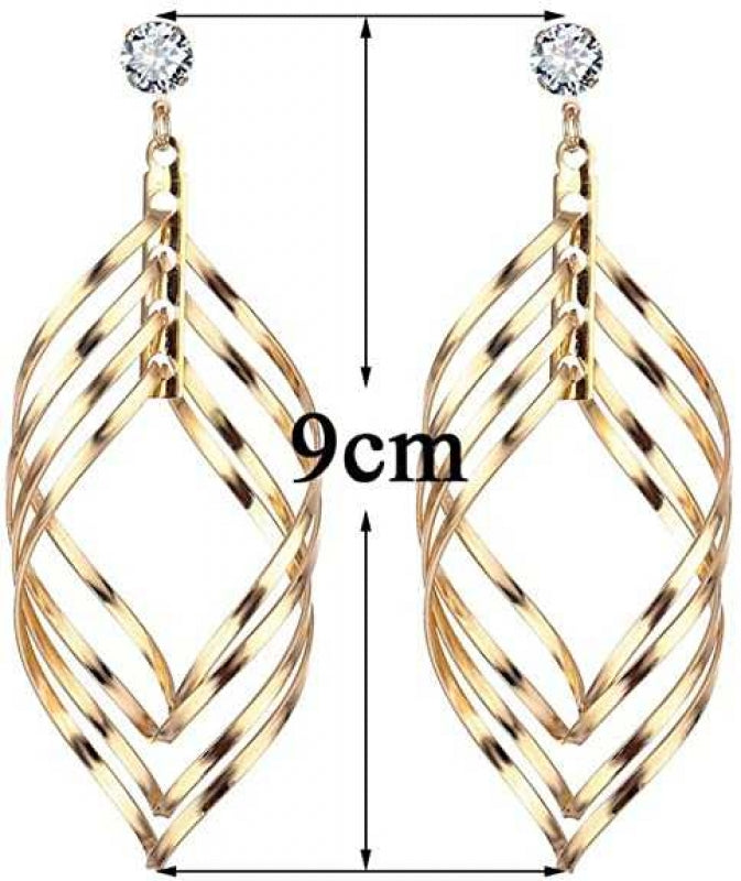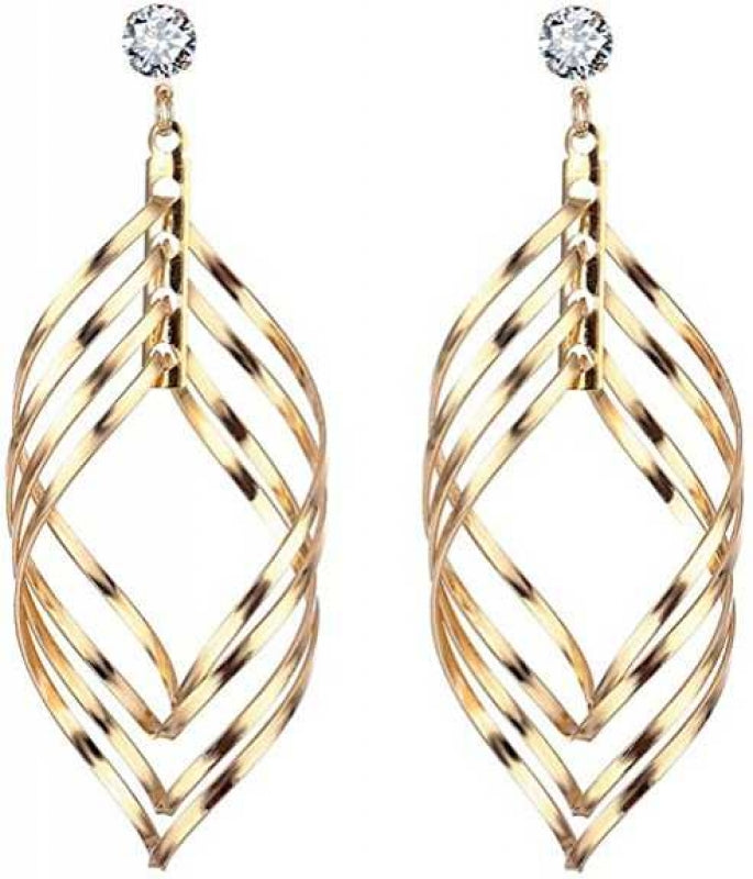 Bold and dazzling, these earrings feature a linear post centred with a cascading leaf-shaped dangle in an annulus pattern. The top of the earrings has a cubic zirconia stud on which this dangle falls. Entrance and enchant with this lovely earring. An ideal gift for her.