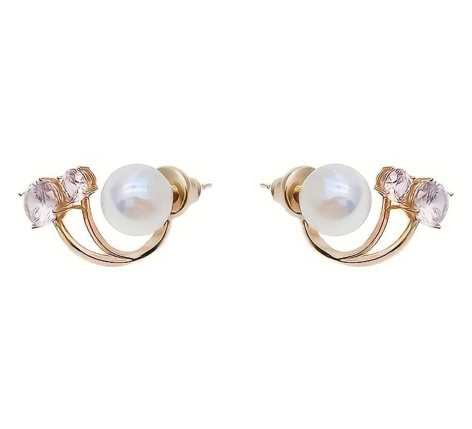 Women's Gold plated Faux Pearl Stud Earring With Pushback Closure