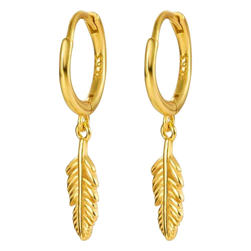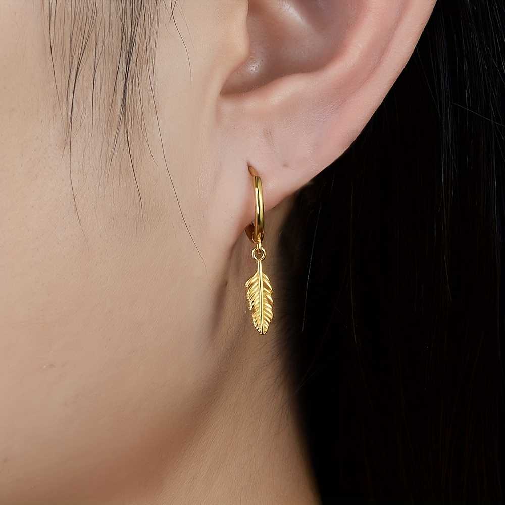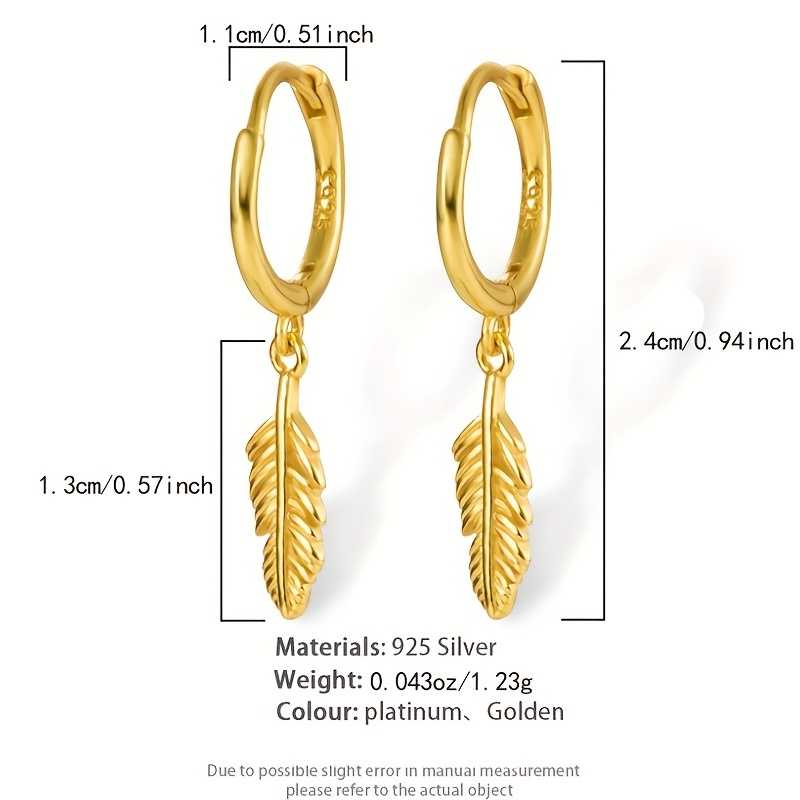 Women's Gold Plated Feather Dangle Drop Hoop Earrings