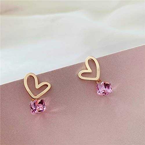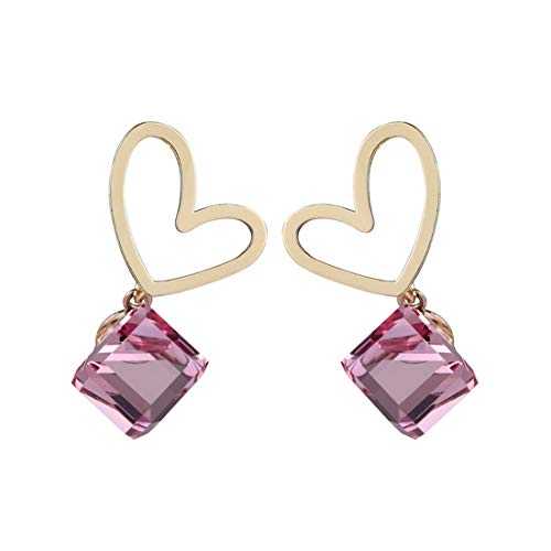 Women's Gold Plated Heart Shape Stud Earrings With Crystal Drop