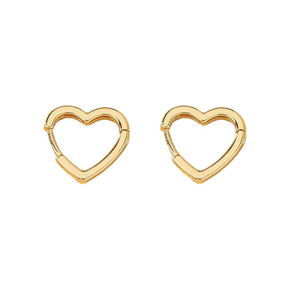 Women's Gold Plated Heart Shaped Stud Earring With Hinged Hoops