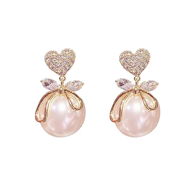 Women's Gold Plated Heart Zirconia Stud Earrings With Pearl Drop