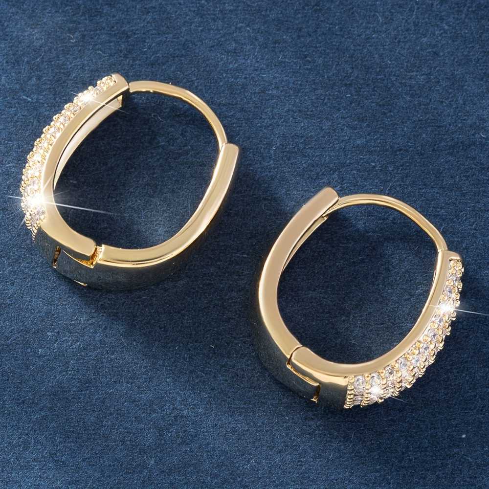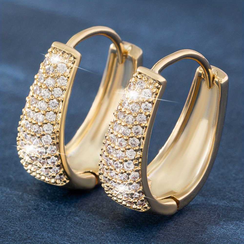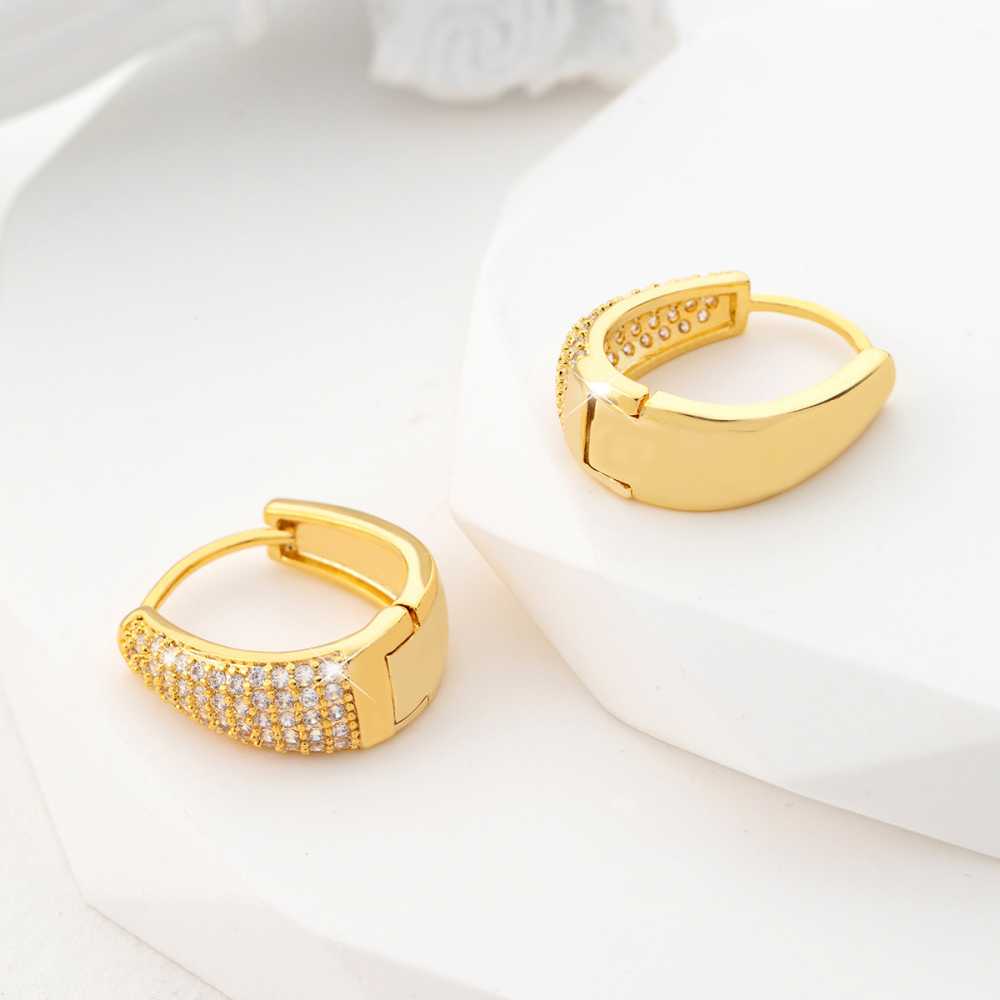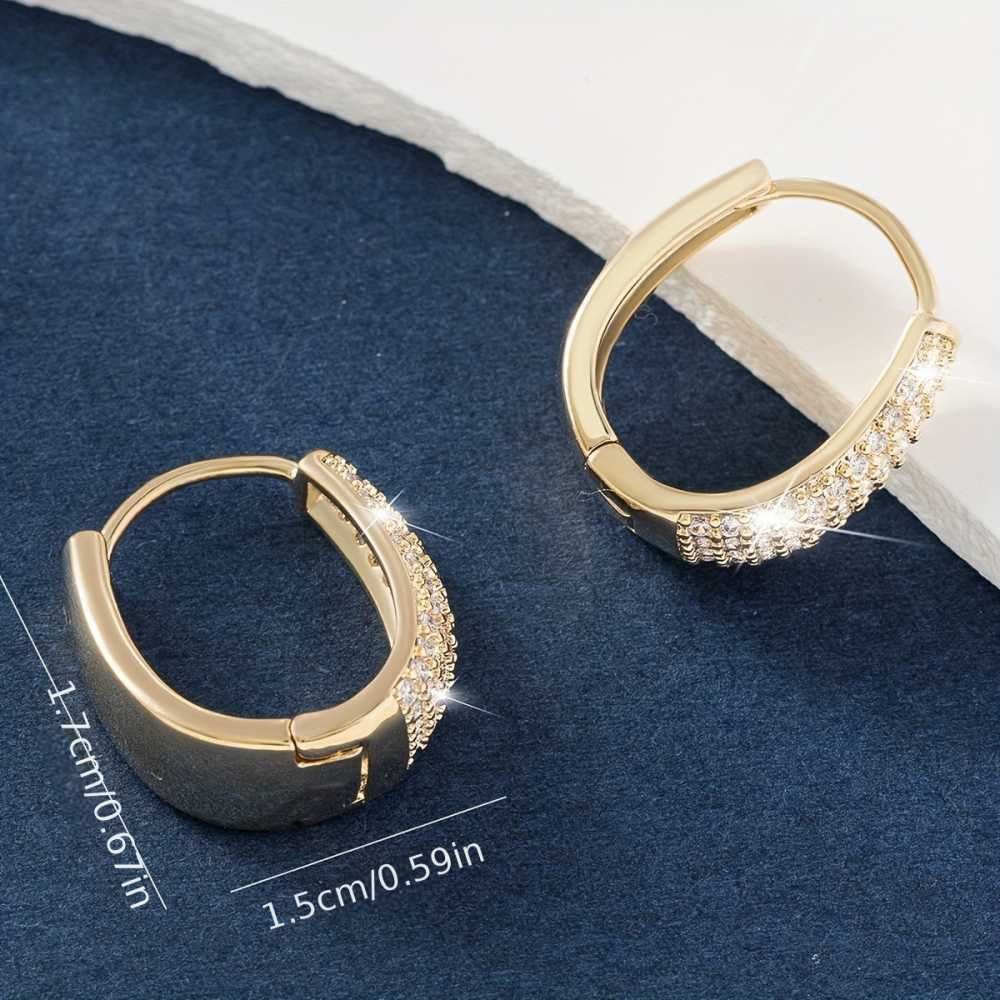 This earrings feature a timeless hoop design with a twist, boasting a hinged closure for easy wear and added security. Each hoop is meticulously embellished with sparkling cubic zirconia stones, elevating this earrings to a new level of brilliance. The cubic zirconia stones are intricately set along the outer surface of the hoops, catching and reflecting light with every movement, adding a touch of glamour to any look. Crafted with high quality materials, these earrings are designed to be lightweight for comfort during extended wear while maintaining durability and style. Their versatility allows them to effortlessly transition from casual daywear to elegant evening attire, making them a must have accessory for various occasions. The exquisite combination of the hinged design and the radiant cubic zirconia stones makes these earrings a statement piece, offering both sophistication and a hint of sparkle to accentuate your style. Elevate your ensemble with these earrings a perfect balance of timeless charm and contemporary allure, ideal for expressing your unique sense of fashion with grace and glamour.