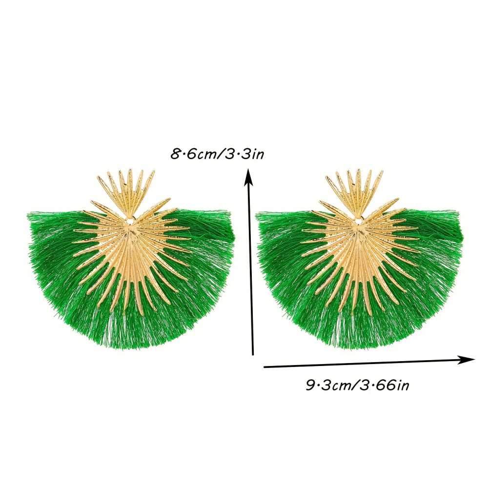 This earrings typically feature a captivating fan shaped design crafted from delicate threads, creating a playful yet sophisticated look. The tassels gracefully dangle and sway with movement, adding a touch of charm and femininity to any outfit. This earrings come in an array of colours, allowing for versatility in styling and matching with various ensembles. Whether vibrant and bold or subtle and muted, the threads create a lovely texture that catches the eye and adds a unique flair to your overall look. Perfect for both casual and formal occasions, this earrings effortlessly elevate any outfit, adding a dash of personality and a hint of bohemian chic. Their lightweight nature ensures comfort for prolonged wear while making a stylish statement. This earrings make fantastic gifts due to their trendy yet timeless appeal, suitable for fashion forward individuals or those with a penchant for unique accessories.
