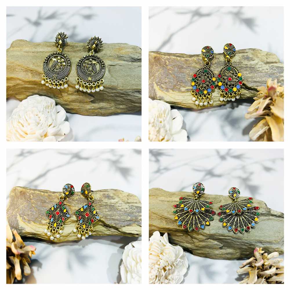 Bling Queen is an affordable fashion jewellery brand with various product types like bracelets, necklaces, earrings, rings, etc. suitable for women, men and kids. Each pair of earrings features a unique design with intricate detailing. The dangling style adds movement and charm to the earrings, making them eye catching and perfect for special occasions. The earrings come in a variety of vibrant and rich colours due to the enamel work. The multi colour enamel adds a pop of colour to the earrings, making them versatile and suitable for different outfits and occasions. The earrings are equipped with secure and comfortable closures, ensuring that they stay in place while wearing them. This combo set of 12 earrings offers versatility, allowing you to mix and match them with various outfits in your wardrobe. You can wear them with traditional Indian attire like sarees and lehengas or pair them with western outfits for a fusion look.