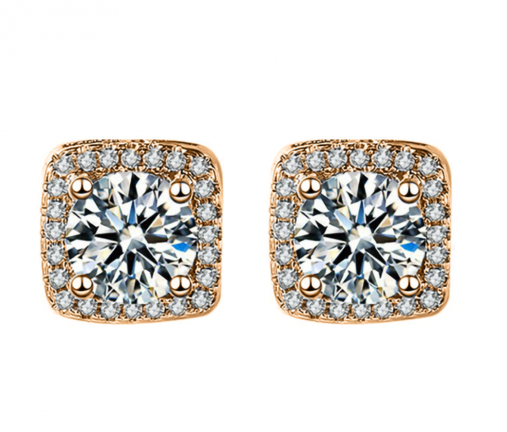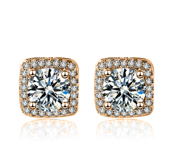 Women's Gold Plated Square Shaped Halo Stud Zirconia Earring