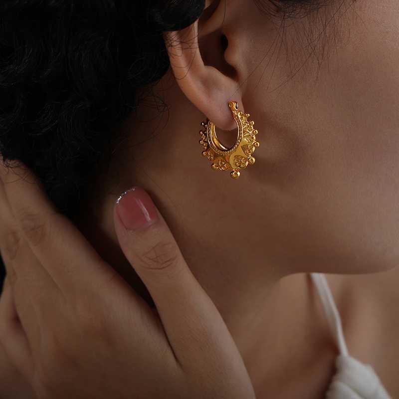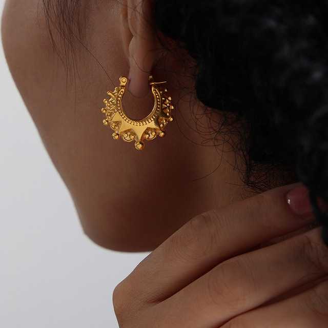 Women’s Gold Plated Stainless Steel Vintage Geometric Hoop Earrings