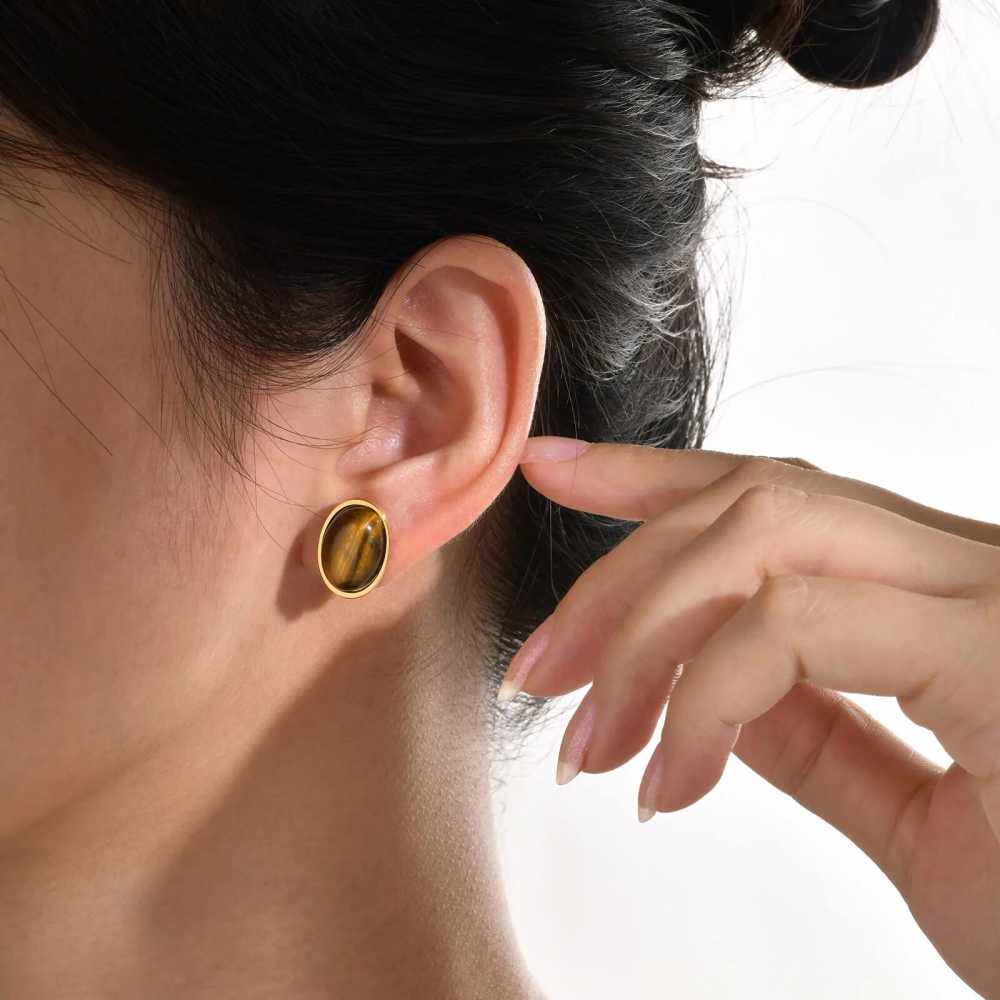Women's Gold Plated Tiger Eye Stone Earring With Pushback closure