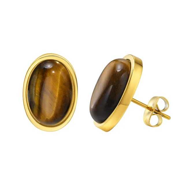 Elevate your style with these exquisite earrings, meticulously crafted for the woman who appreciates the beauty of natural gemstones and the timeless allure of gold. These earrings are crafted with precision, featuring a lustrous gold-plated finish that not only enhances their visual appeal but also ensures durability. The focal point of each earring is the Tiger Eye stone, carefully selected for its distinctive and richly hued patterns, adding an earthy and sophisticated touch to the design. The Tiger Eye stones exhibit a mesmerizing interplay of warm browns and golden hues, resembling the captivating gaze of a tiger. Known for its grounding and protective properties, the Tiger Eye stone adds a meaningful element to the earrings, making them both a stylish accessory and a symbolic adornment. The earrings feature a classic and versatile design that effortlessly complements various styles and occasions. The simplicity of the gold-plated setting allows the natural beauty of the Tiger Eye stones to take center stage, creating a harmonious balance between sophistication and organic charm. Designed for comfort and security, the pushback closure ensures a snug fit, allowing you to wear these earrings with confidence throughout the day. The ease of use and reliability of the pushback closure makes these earrings a hassle-free and stylish choice for any occasion. From casual outings to formal events, these Women's Gold Plated Tiger Eye Stone Earrings with Pushback Closure effortlessly transition, adding a touch of refined glamour to your ensemble. Their neutral tones and timeless design make them a versatile accessory that complements a range of outfits.