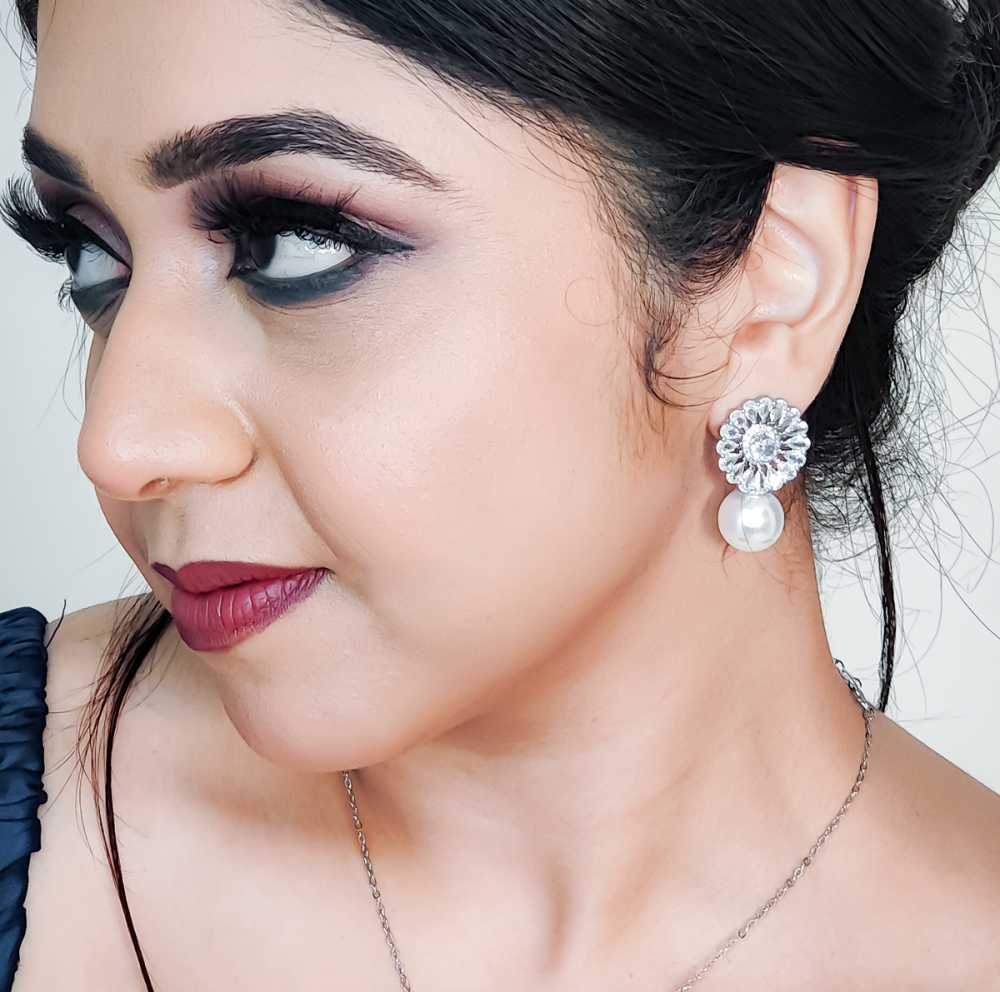 Bling Queen is an affordable fashion jewellery brand with various product types like bracelets, necklaces, earrings, rings, etc. suitable for women, men and kids. The earring features a delicate floral motif design, which adds a touch of grace and sophistication. The floral motif is intricately crafted and adorned with zirconia stones, providing a sparkling and luxurious appearance. At the bottom of the earring hangs a round pearl drop. The pearl's smooth surface and lustrous sheen complement the shimmering zirconia stones beautifully. The earring likely has dimensions that are proportionate to its design, offering a balance between sophistication and wearability. This earring is versatile and suitable for various occasions, ranging from formal events to everyday wear. Its timeless design and classic color scheme make it easy to pair with a wide range of outfits, adding a touch of elegance to any ensemble. Its stunning design and high quality materials make it a must have accessory for any jewelry collection.