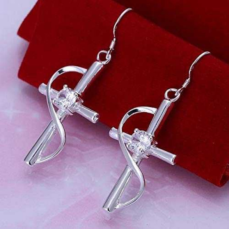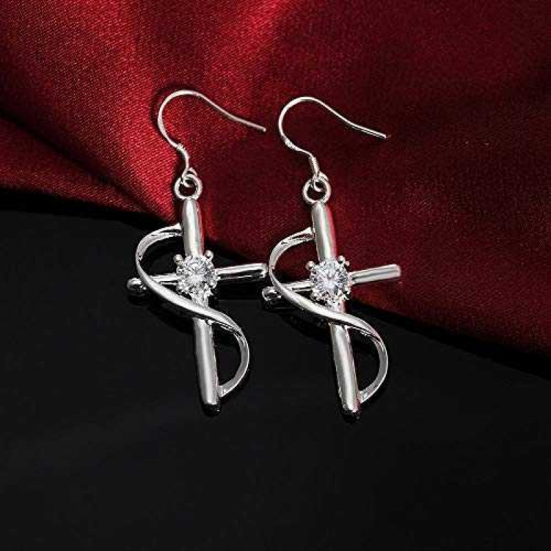 This dazzling cross earring has a graceful look for expressing your faith in style. This earring has a swirling ribbon like an infinity design that makes a sinusoidal wave along with the cross and has a sparkling stone at the centre of the cross. Simple yet significant, wear this statement piece to look unique.