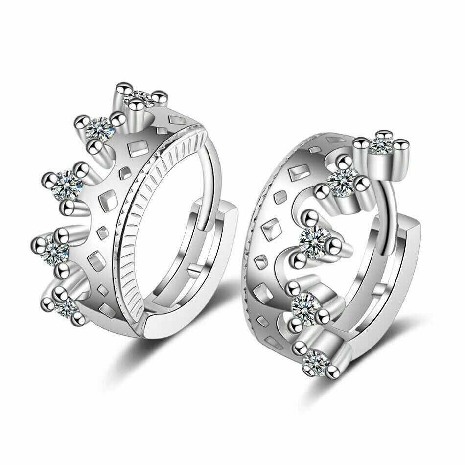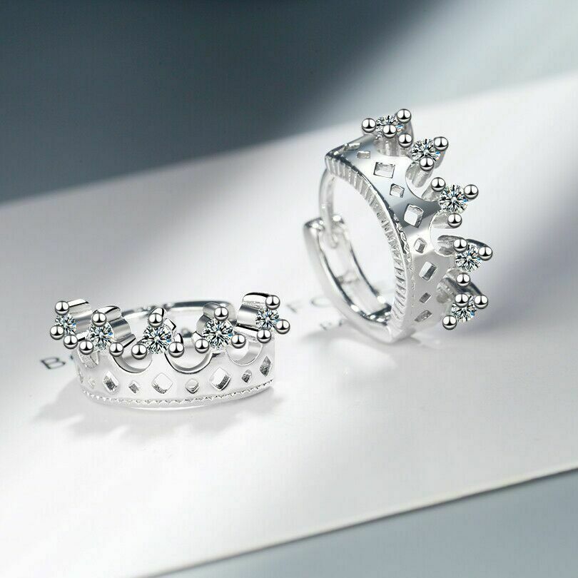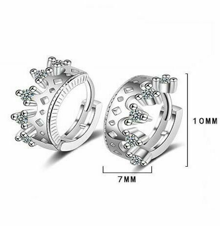 The crown motif is a central element of the design, symbolizing royalty and elegance. The hoop is adorned with a crown motif, adding a regal and elegant touch to the design. The crown may be intricately detailed with small embellishments, giving it a royal and sophisticated look. Crystals are strategically placed along the hoop and the crown, catching and reflecting light to create a dazzling effect. Crystals are strategically placed along the hoop and the crown, adding a sparkling and glamorous element to the earrings.