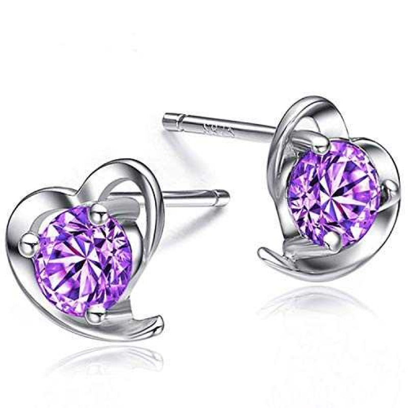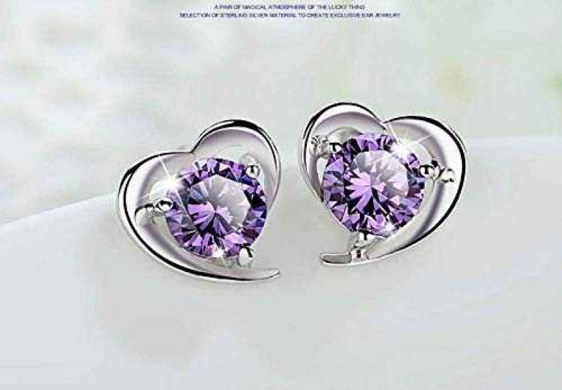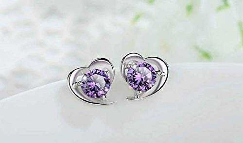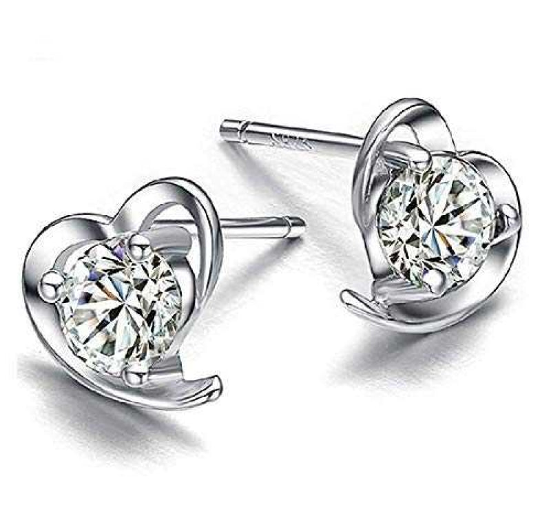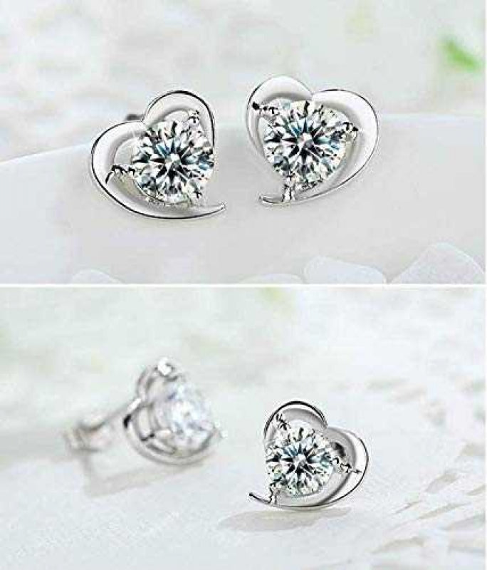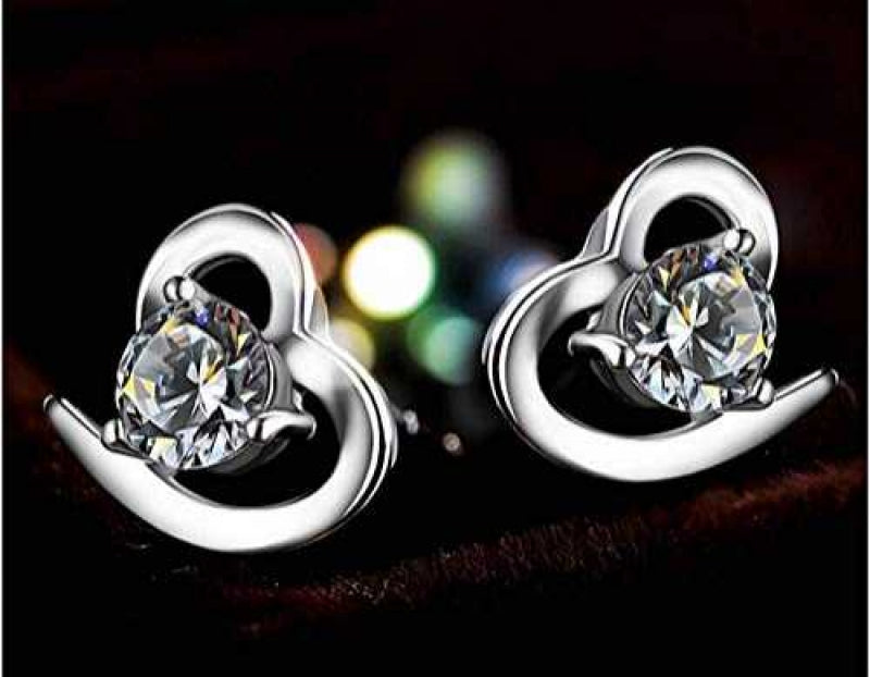 Women's Silver Plated Heart Stud Earrings With Zirconia