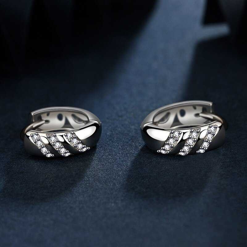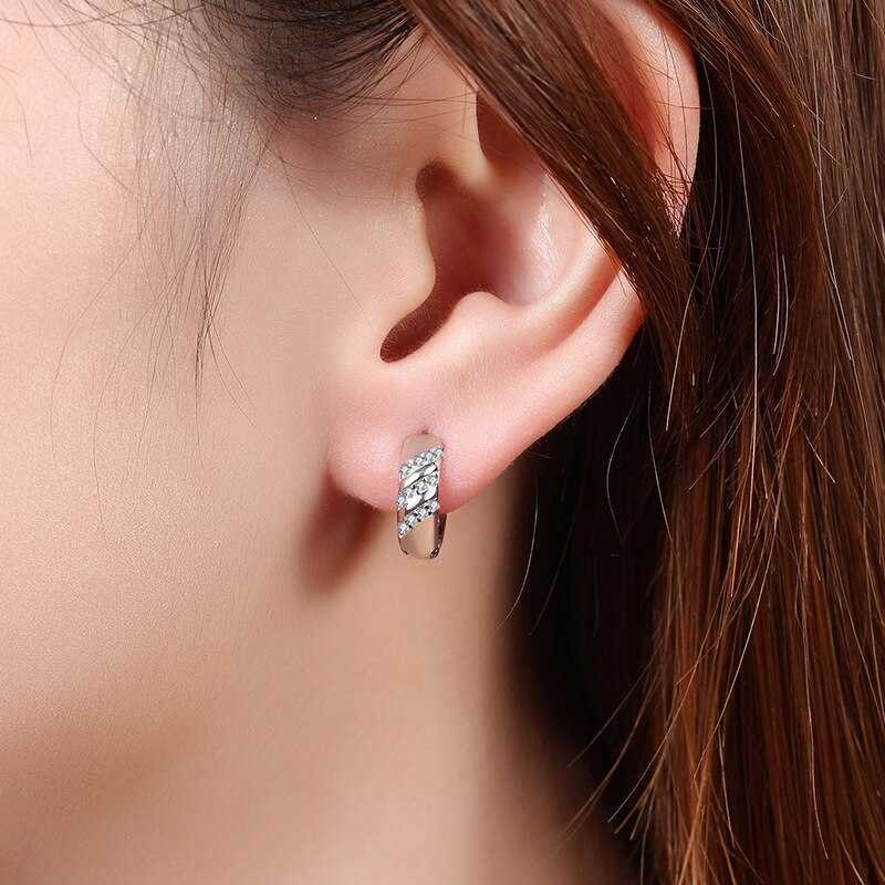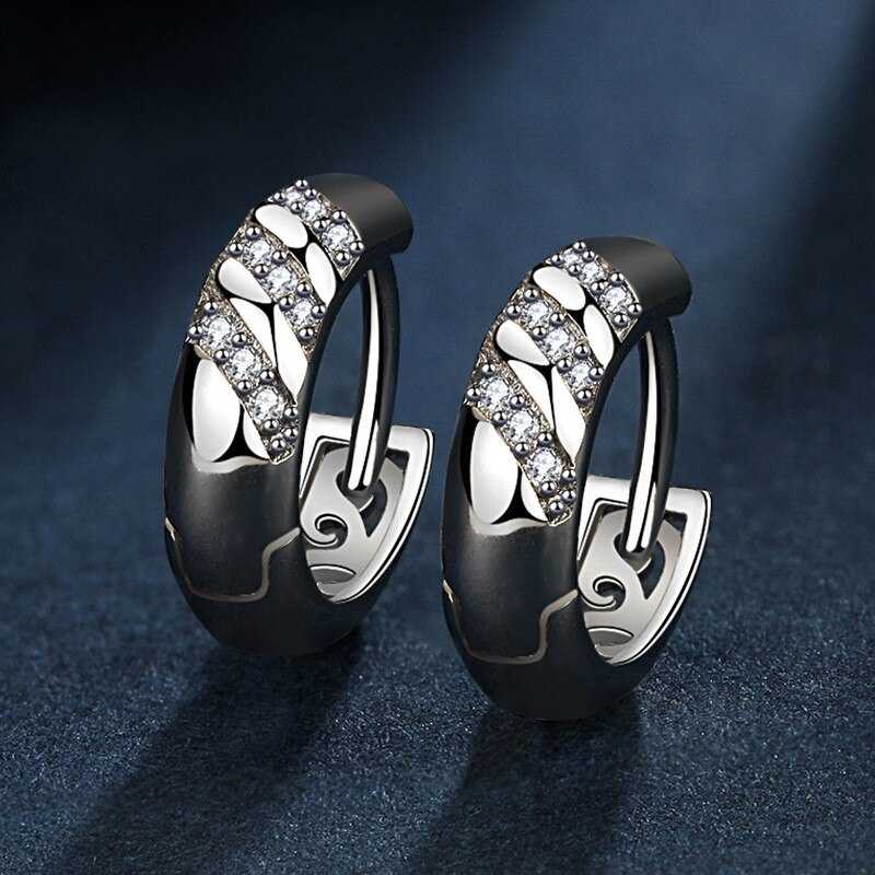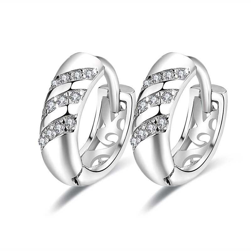 One half of each earring features an openwork design. The exterior facing section shows three rows of round sparkling crystals stones and the interior shows vine filigree with hinge closure. These earrings are a classy and versatile choice for a sophisticated woman.