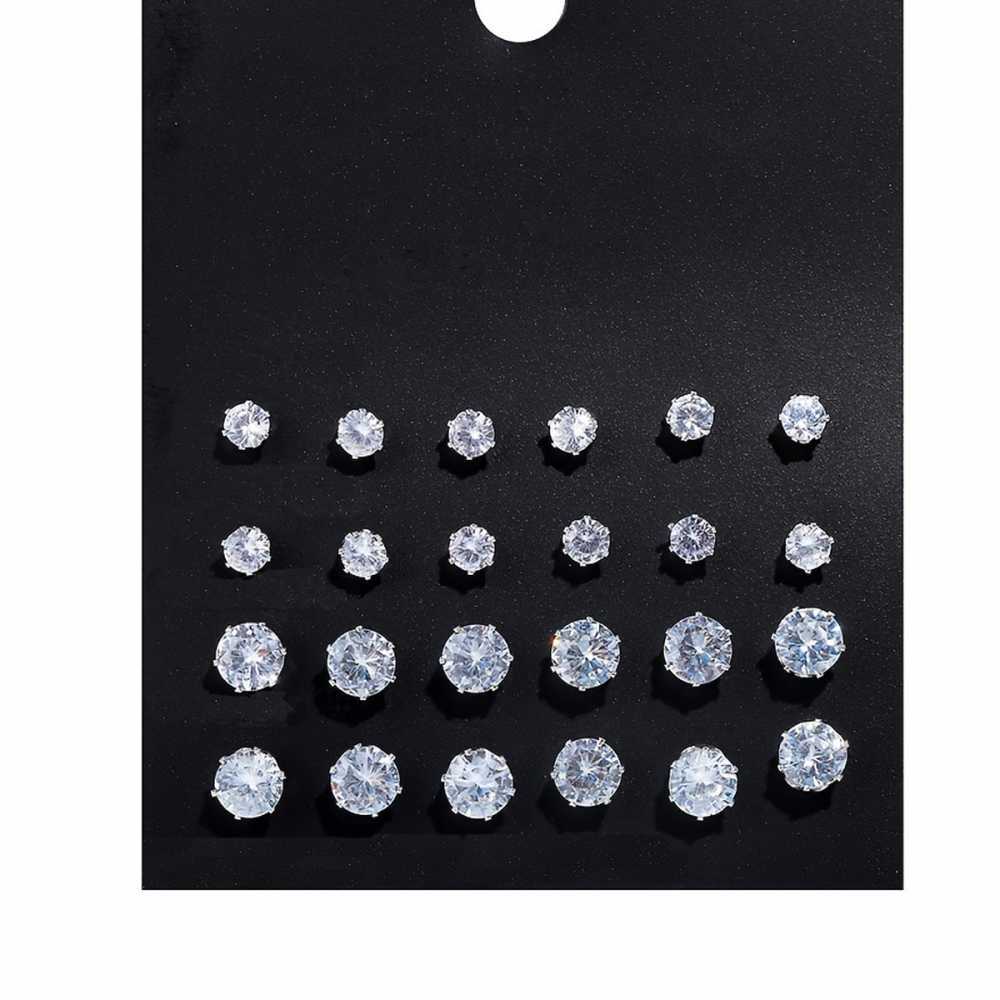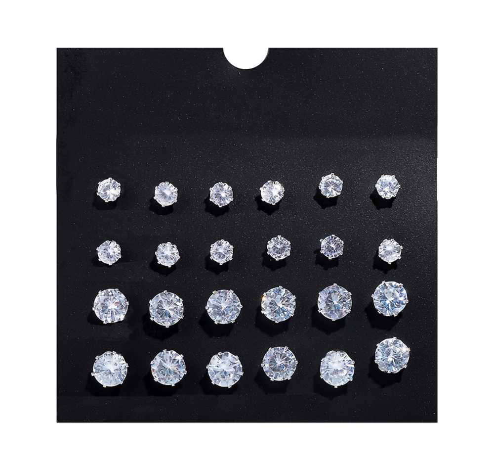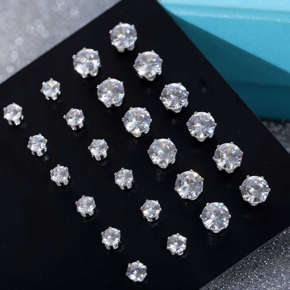 Women's Silver Plated Multi Size Cubic Zircon Round Cut Stud Earring