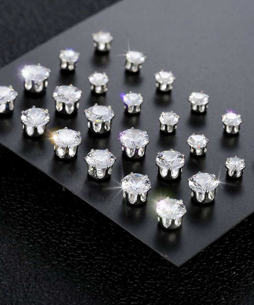 These exquisite stud earrings boast meticulously crafted cubic zirconia gemstones renowned for their scintillating brilliance and flawless clarity. A masterfully simulated diamond, captures and reflects light with unparalleled radiance, creating an aura of opulence. Impeccably cut into the timeless round shape, each cubic zirconia gemstone is a testament to precision and artistry. The round cut maximizes light dispersion, allowing these earrings to emanate a captivating sparkle that turns heads and catches eyes. Available in a spectrum of sizes, from dainty and delicate to boldly glamorous, these stud earrings cater to the individual's desire for personalized elegance. Whether you opt for subtle sophistication or a statement piece, there's a size that perfectly mirrors your style. The earrings are equipped with secure and chic backings, ensuring they rest snugly against the earlobe. Choose between the effortless elegance of butterfly backs for a worry free and comfortable wear. These earrings effortlessly transition from everyday elegance to glamorous soirées. They are the perfect accessory to elevate your style, adding a touch of refined sparkle to any occasion. These earrings make for an enchanting and thoughtful gift. The variety of sizes allows you to select a pair that resonates with the recipient's style, making them an ideal present for special occasions and celebrations.