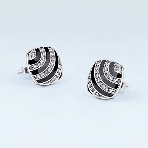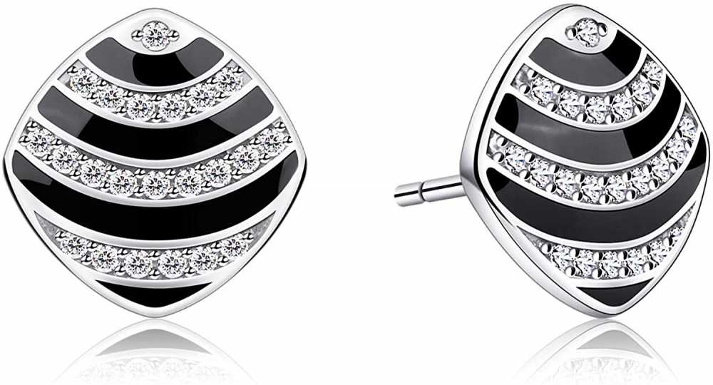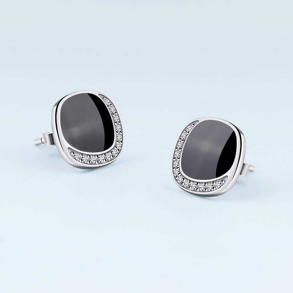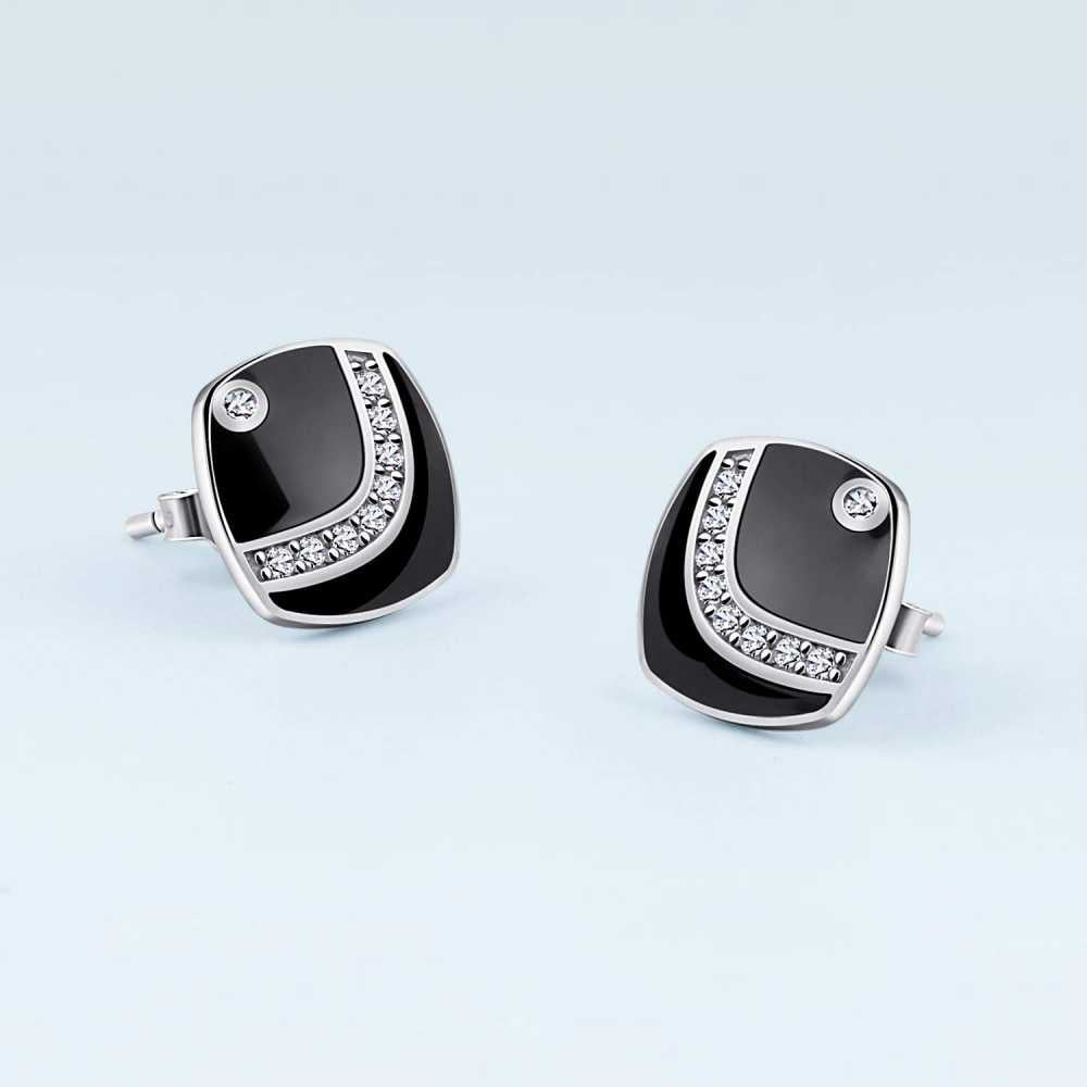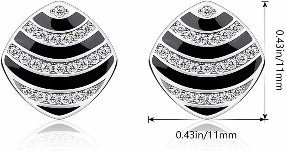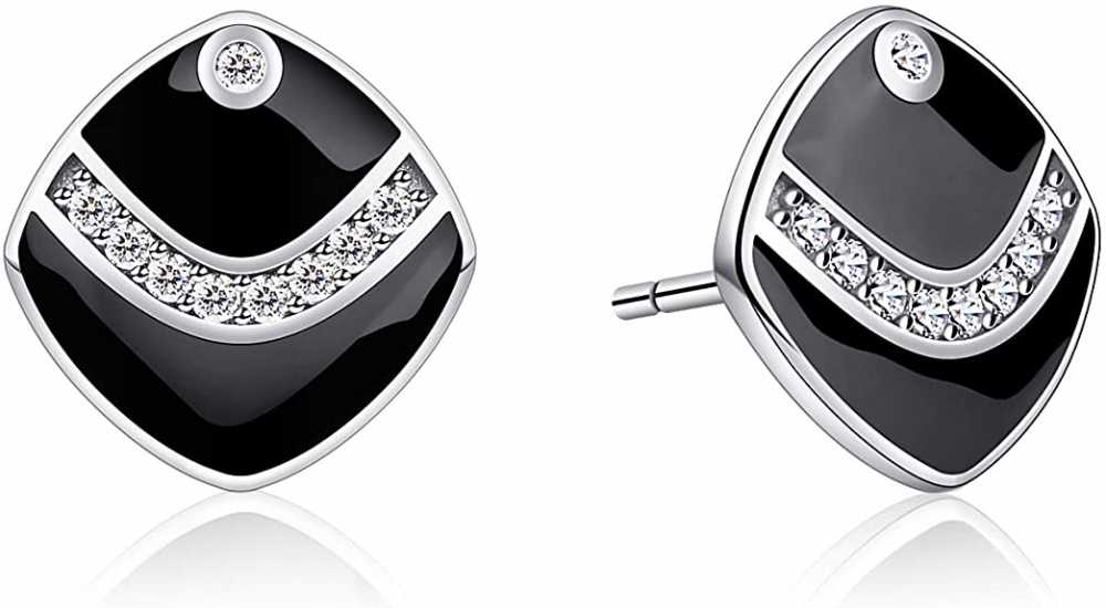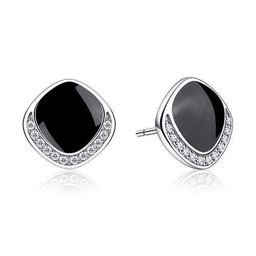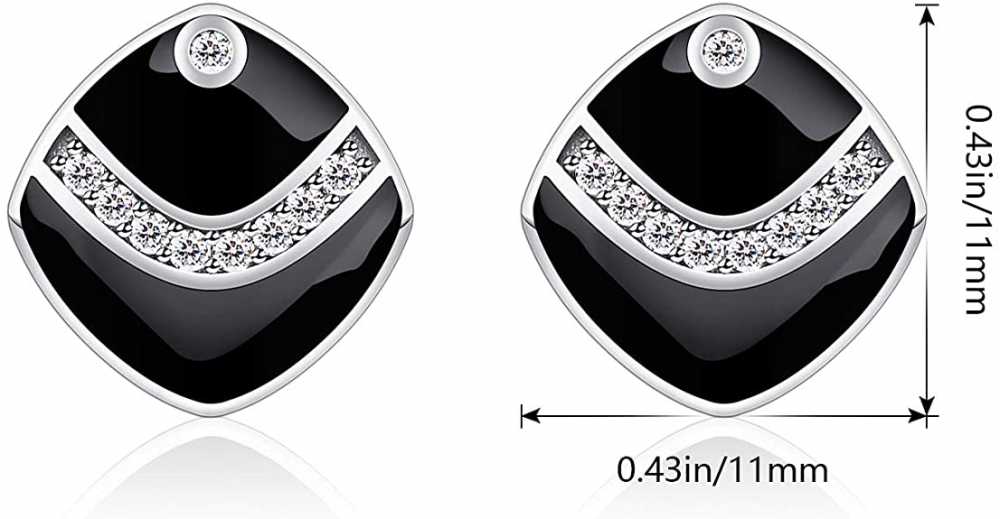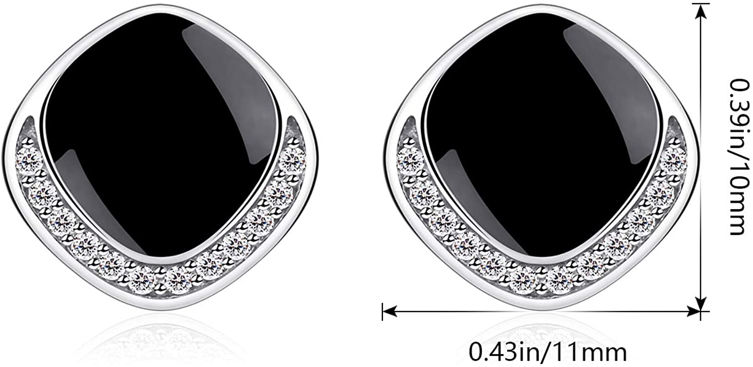 Women's Silver Plated Onyx Stud Earrings With Cubic Zirconia