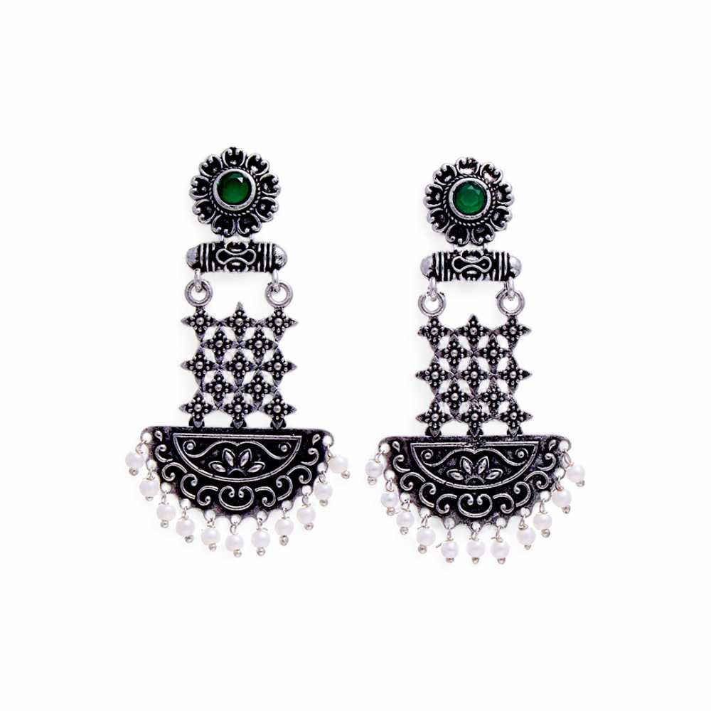 Women's Silver Plated Oxidised Antique Look Pearl Drop Earring