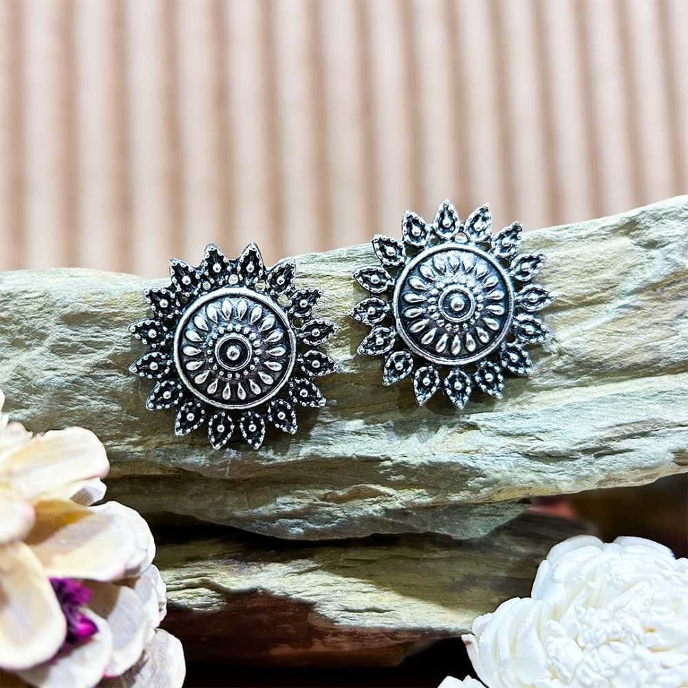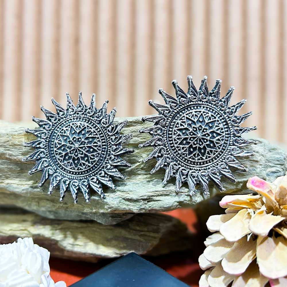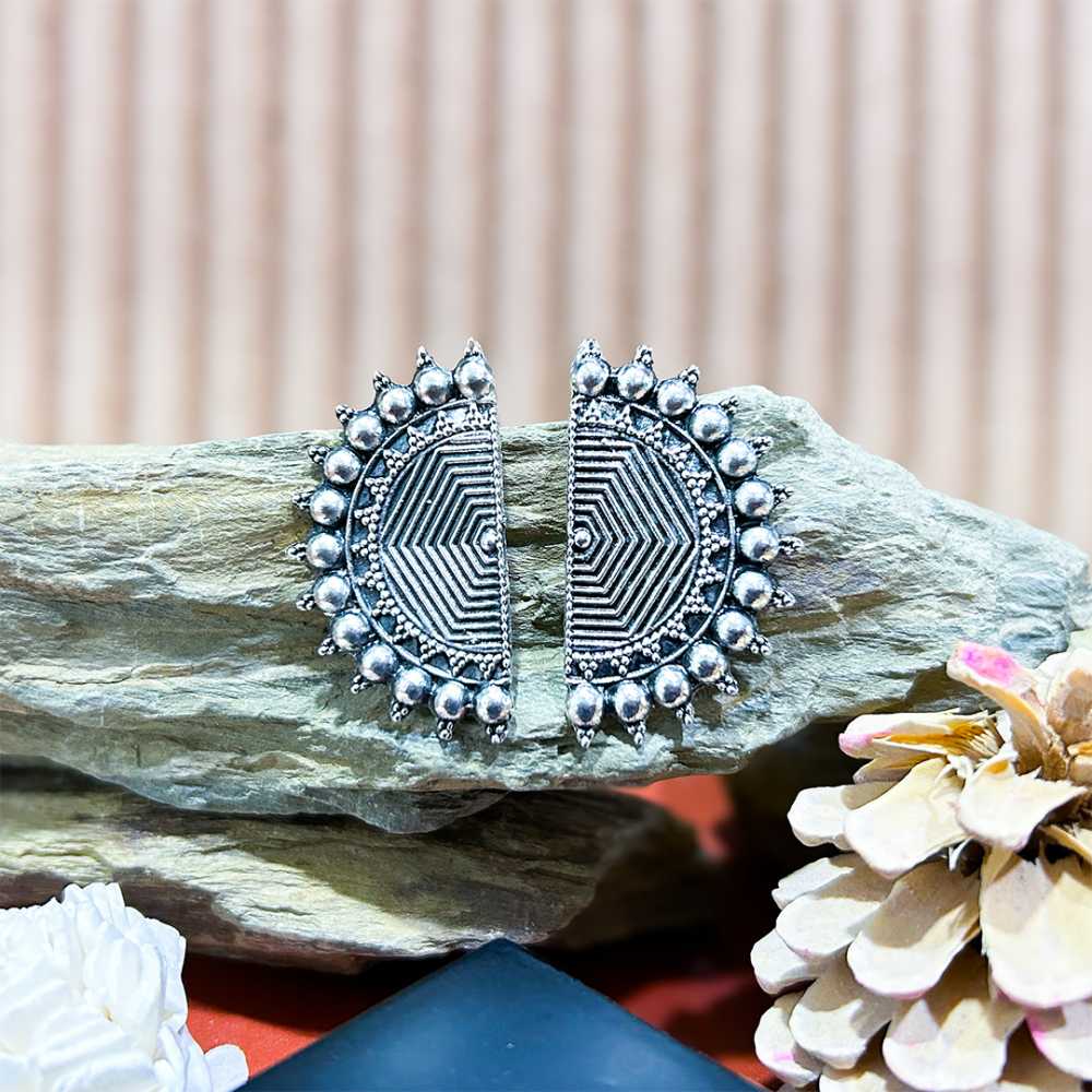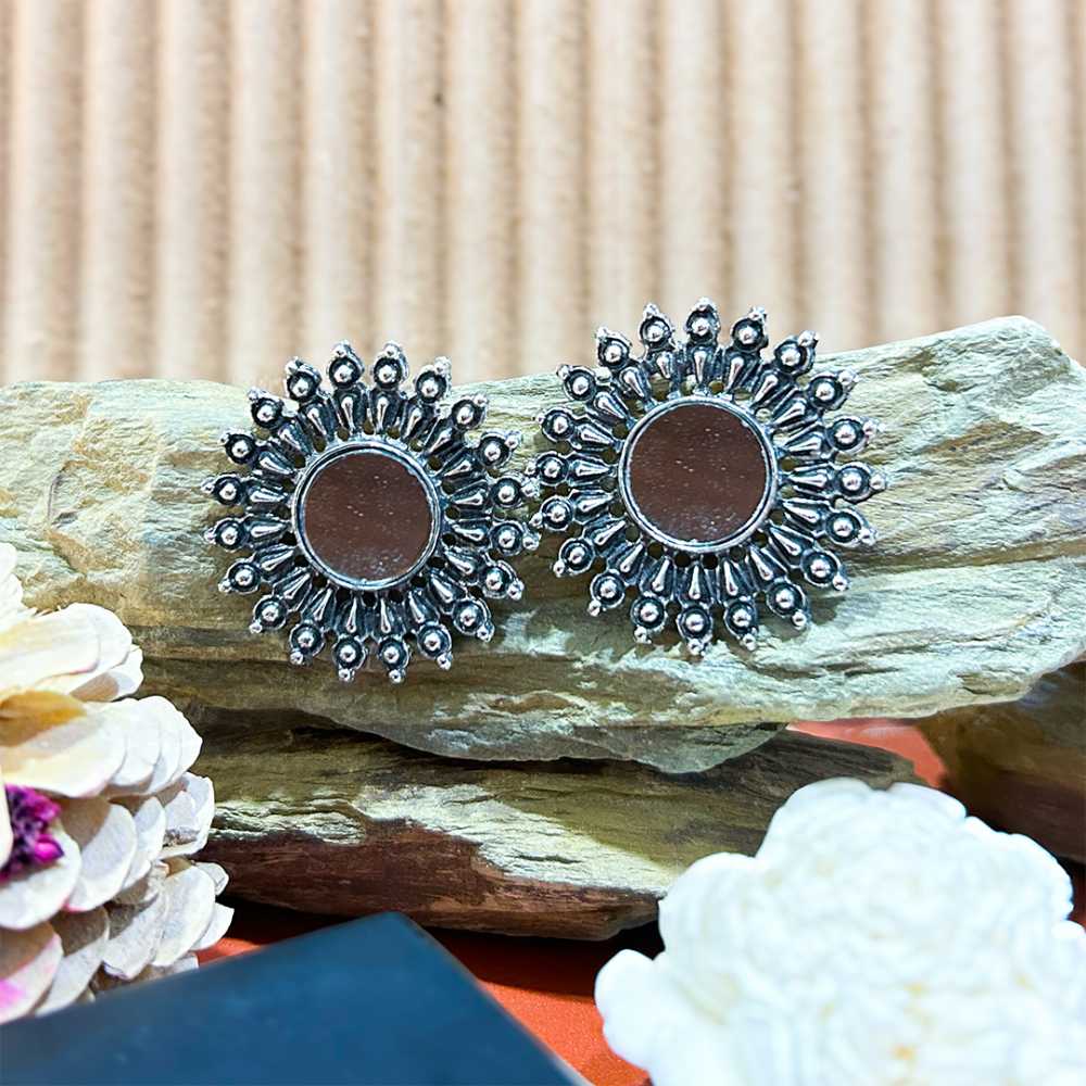- Product Particulars: Crafted from high quality silver plated oxidised metal, embellished with mirror. This earrings are secured with push back closures.