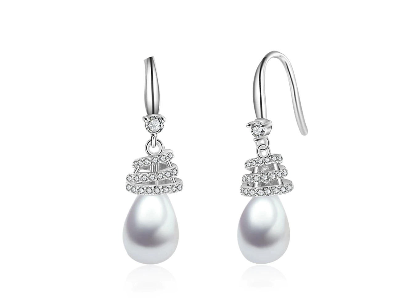 Sophisticated and classy, these pearl earrings with dazzling cubic zirconia, spins on a teardrop pearl making a sparkling effect for any occasion. This vintage style sparkle is sure to have a glittering effect that accentuates any attire you wear.