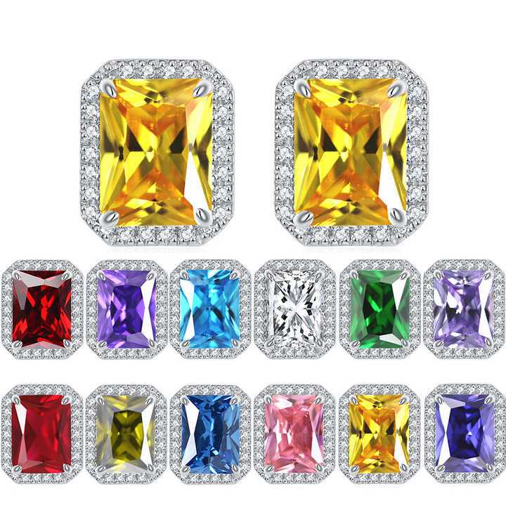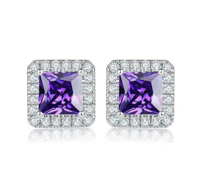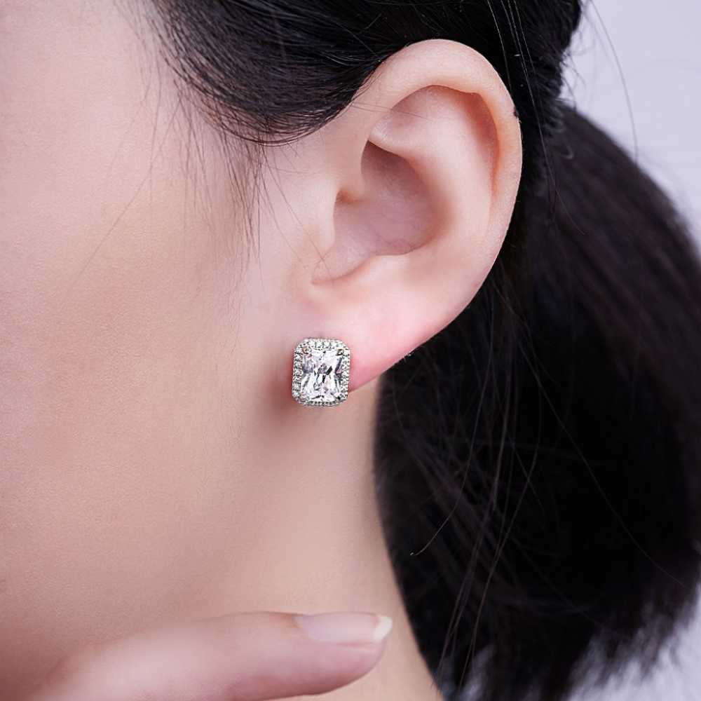 Women's Silver Plated Princess Cut Halo Zirconia Stud Earrings