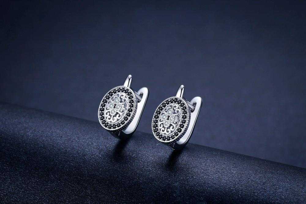 This hoop earring is intricately designed and embellished with cubic zirconia and spinels. The perfect gift choice for women on their birthdays, weddings, parties, and other celebrations.