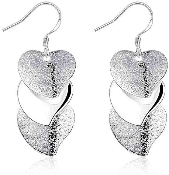 Women's Silver Plated Triple Heart Hook Dangle Earrings