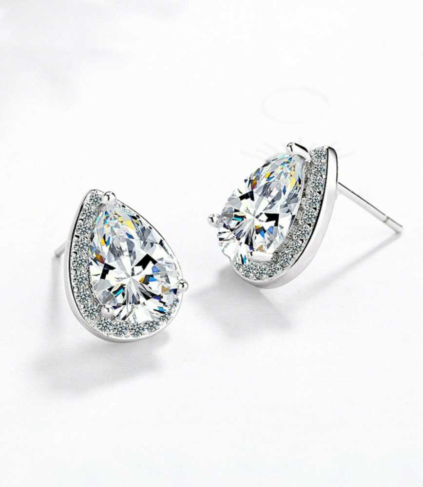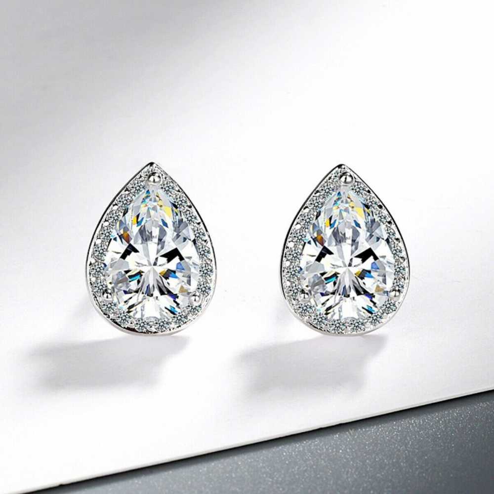 Women's Silver Plated Water Drop Earrings With Cubic Zirconia
