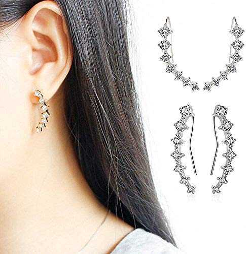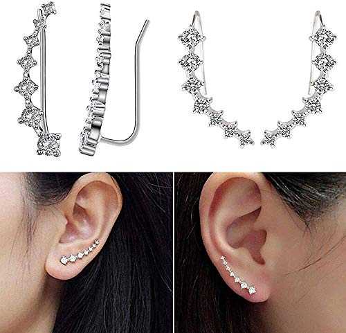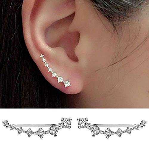 Elevate your style with these earrings, a perfect blend of sophistication and contemporary design. Crafted with precision and attention to detail, these earrings showcase a radiant silver plated finish that exudes timeless elegance. The intricate hoop design delicately embraces your earlobe, creating a unique and eye catching climber cuff effect. Adorned with sparkling zirconia stones, these earrings add a touch of glamour to any ensemble, effortlessly catching the light and drawing attention to your refined sense of fashion. Designed for the modern woman who appreciates both classic charm and contemporary trends, these earrings seamlessly transition from casual to formal occasions. The secure and comfortable cuff style closure ensures a snug fit, allowing you to wear them with confidence and ease. Whether you are heading to a special event, a night out on the town, or simply want to elevate your everyday look, these earrings are the perfect accessory to express your individuality and enhance your personal style. Elevate your jewelry collection with these timeless, yet on trend earrings that effortlessly capture the essence of modern femininity. The zirconia stones on these earrings are meticulously selected for their exceptional brilliance and clarity. Each stone is precisely set to maximize its reflective properties, creating a dazzling play of light that adds a touch of glamour to your every movement. Despite their bold and intricate design, these earrings prioritize comfort. The lightweight construction ensures that you can wear them for extended periods without any discomfort, allowing you to showcase your style with ease throughout the day or night.