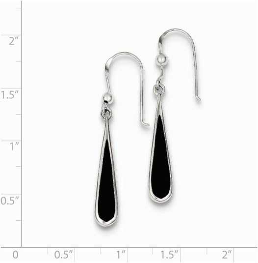 Women's Stainless Steel Onyx Teardrop Dangle Hook Earrings