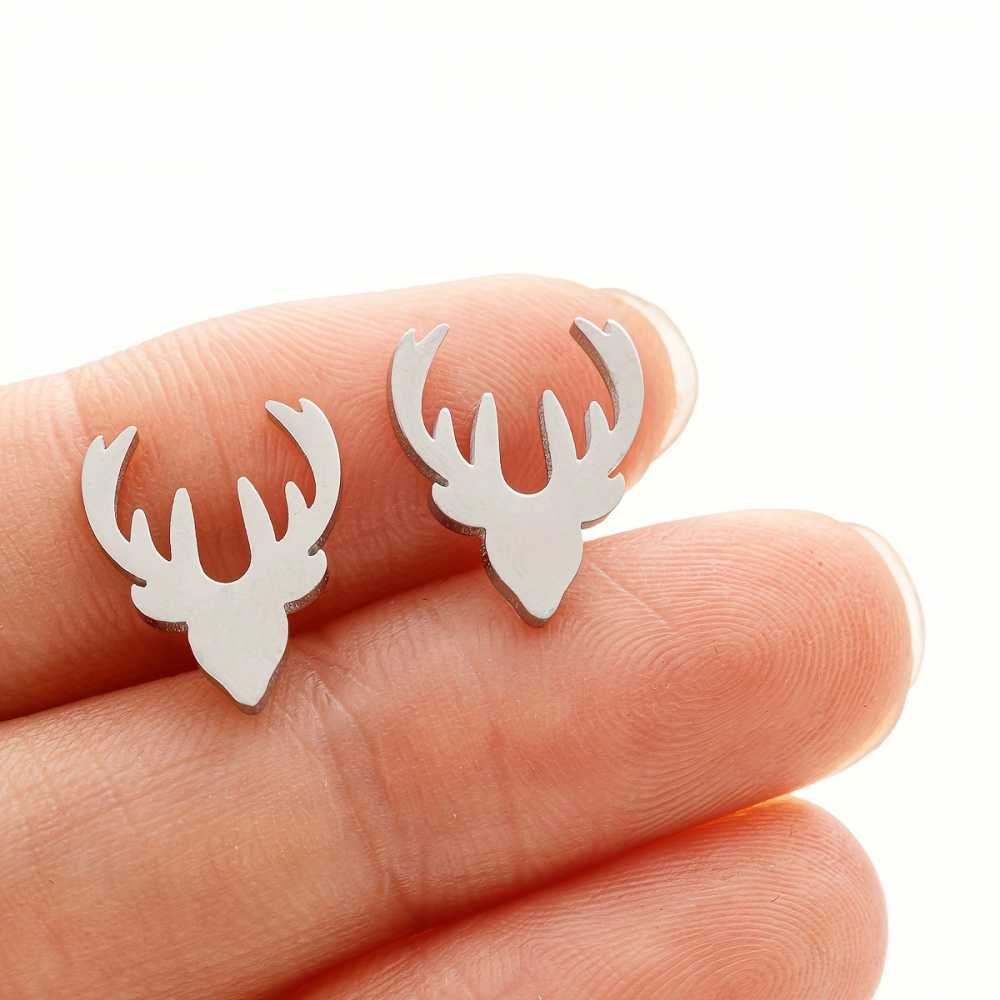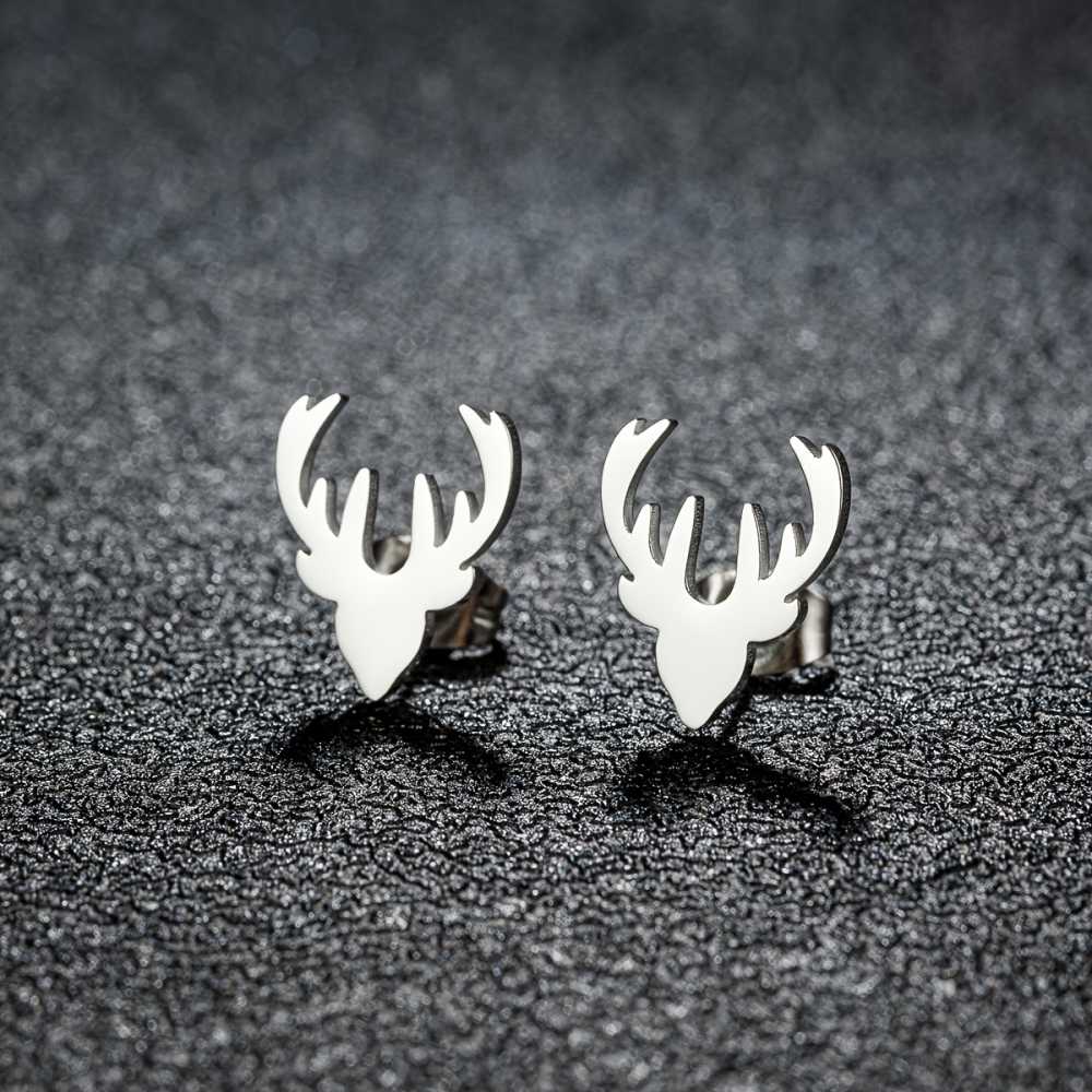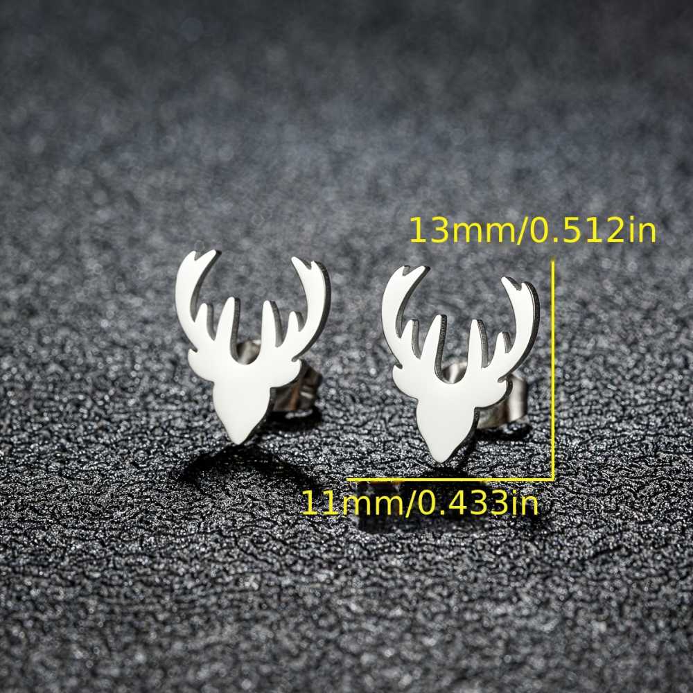 Men's Stainless Steel Deer Head Antlers Stud Earrings Stylish Design