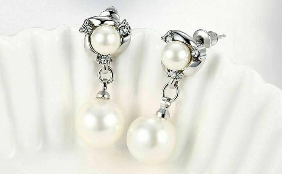 These pearl earrings studded with cubic zirconia with a pearl drop is classic and elegant that suites your everyday attire. Wear it in style and that exudes elegance that will bring instant compliments. An ideal gift for her.