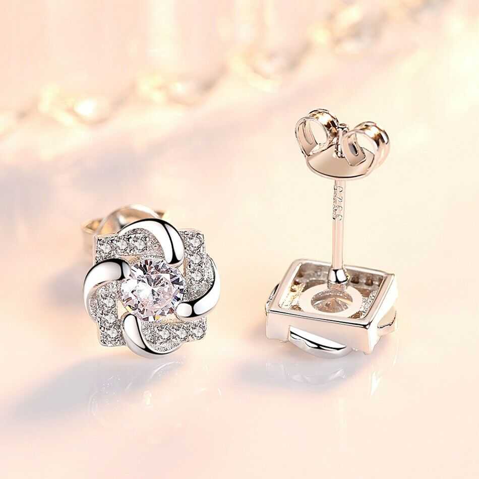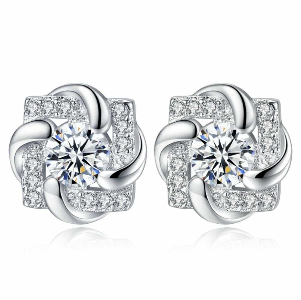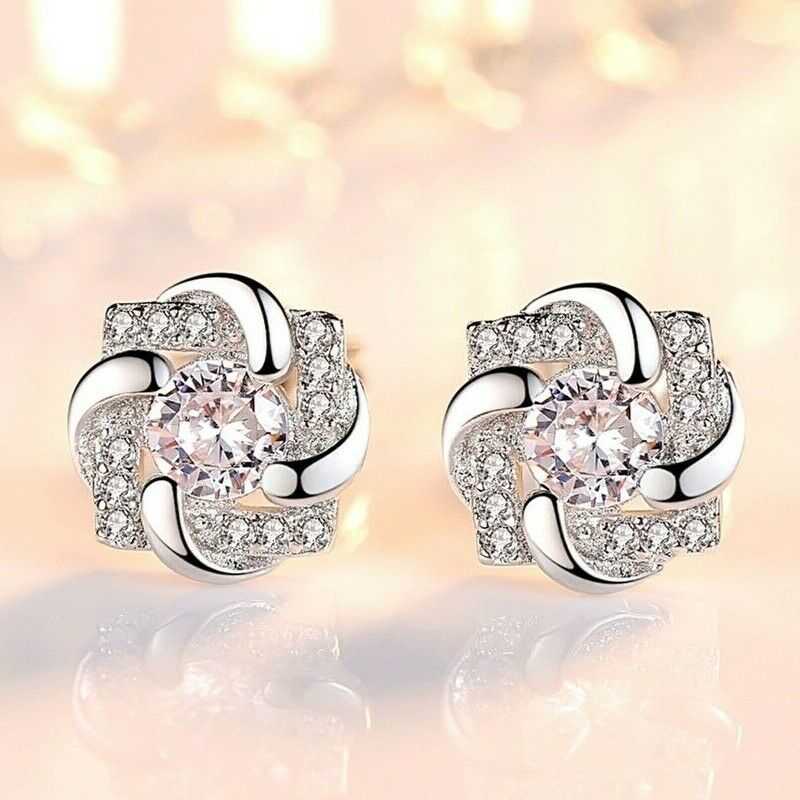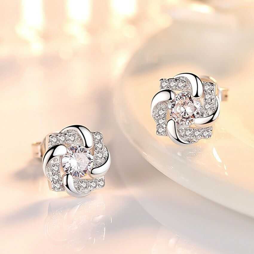 Classy and elegant, these shimmering swirl earrings are studded with a solitaire cubic zirconia at the center. Perfect wear for all day, these petite swirl stud earrings bring on the shine and sparkle.