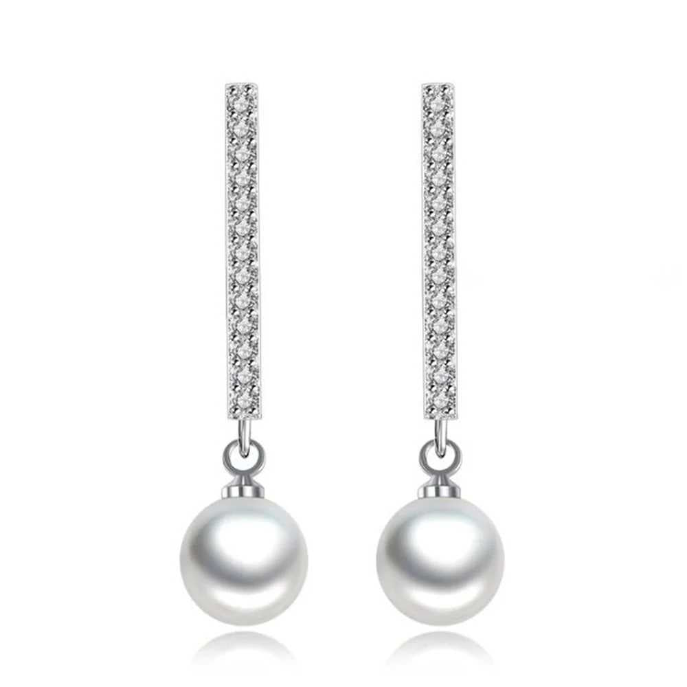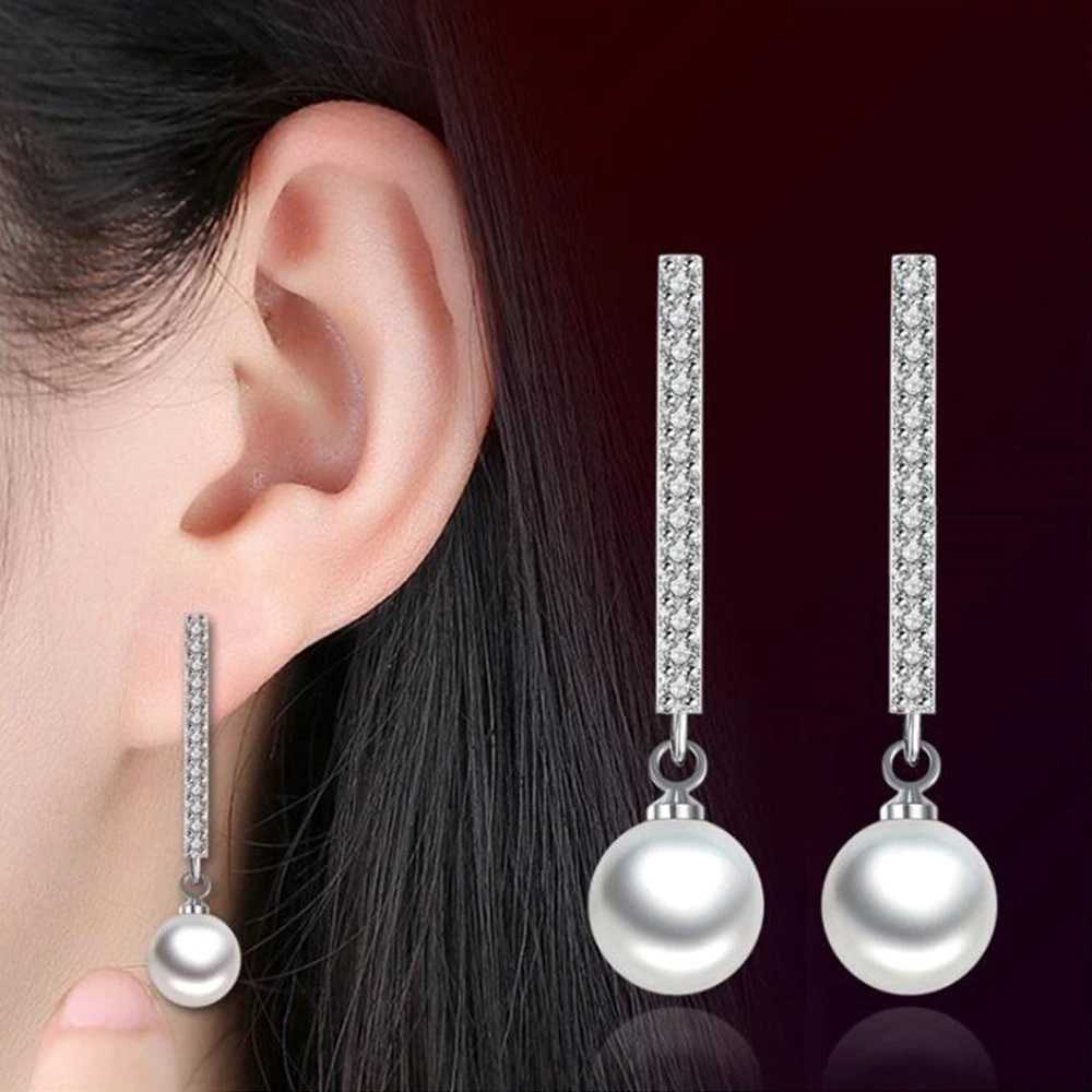 Women's Silver Plated Pearl Dangled Earrings With Cubic Zirconia