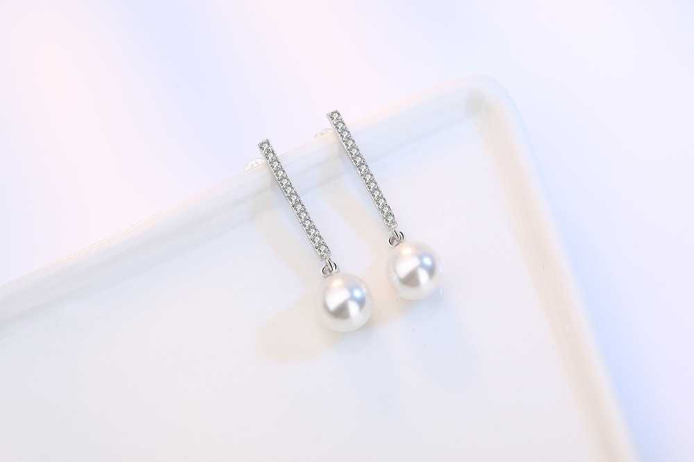 An exquisite and elegant accessory designed to enhance the beauty of any outfit. Here is a detailed description of these stunning earrings. The earrings feature a dangle style, allowing the pearls and cubic zirconia stones to sway gently, catching the light and creating a captivating effect. A carefully crafted silver plated stud serves as the base, ensuring a secure and comfortable fit on the earlobe. The design is thoughtfully balanced, combining the luster of pearls with the brilliance of cubic zirconia, creating a harmonious and sophisticated look. The pearls used in these earrings are typically white or off white, contributing to a classic and versatile appearance. Pearls are known for their natural beauty and timeless elegance, making them a popular choice for various occasions, from formal events to everyday wear. Cubic zirconia stones are strategically placed to enhance the overall glamour of the earrings. These stones resemble the brilliance of diamonds, providing a luxurious touch without the high cost associated with genuine diamonds. The earrings are designed to be noticeable without being overly heavy, striking a balance between style and comfort. The dimensions ensure that the earrings are suitable for various face shapes and hair lengths. The earrings feature a secure closure mechanism, such as a butterfly or push back closure, ensuring that they stay in place while being worn. These earrings are versatile and can be worn for a variety of occasions, ranging from formal events like weddings and parties to more casual outings. The timeless design makes them a great addition to both contemporary and traditional wardrobes. The earrings are typically presented in an elegant jewelry box or pouch, providing a stylish and protective storage solution. The earring offer a perfect blend of sophistication, classic beauty, and modern design. Whether as a gift or a personal indulgence, these earrings are sure to add a touch of glamour to any ensemble.