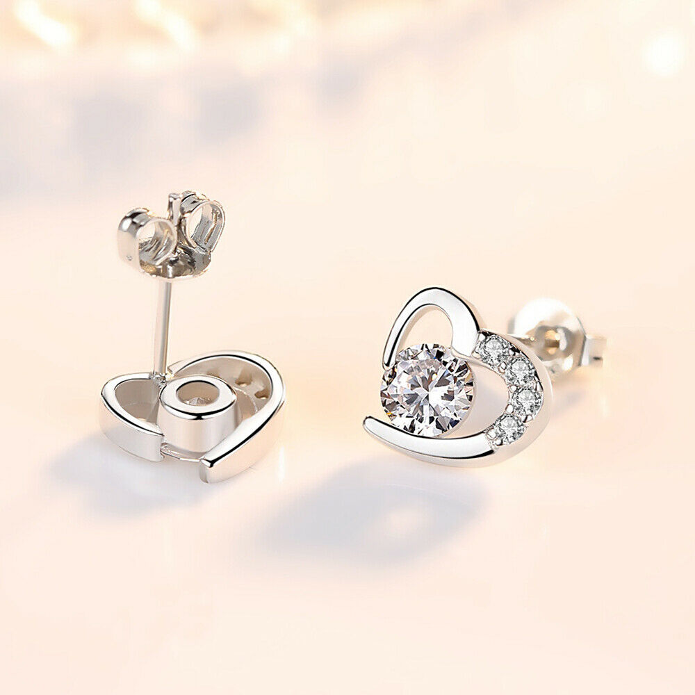 Bring a subtle dazzle to any outfit with these exquisite stud silver plated earrings. These earrings are designed with crystals paved on a swirling open heart with a round solitaire crystal at the center. Pamper yourself with this stunning dazzle.