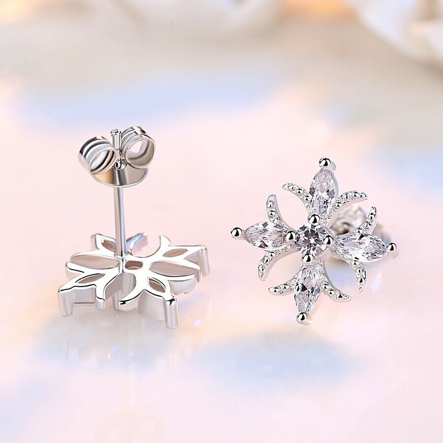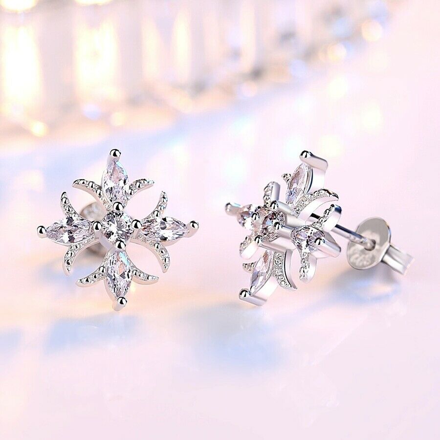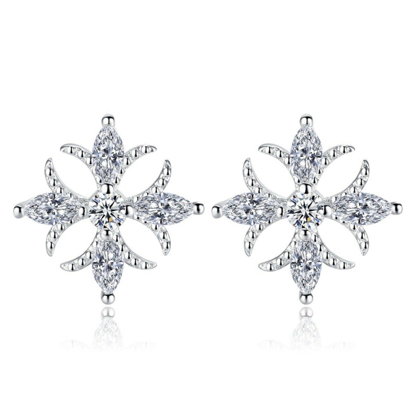 Women's Zirconia Floral Stud Earrings With Butterfly Pushbacks