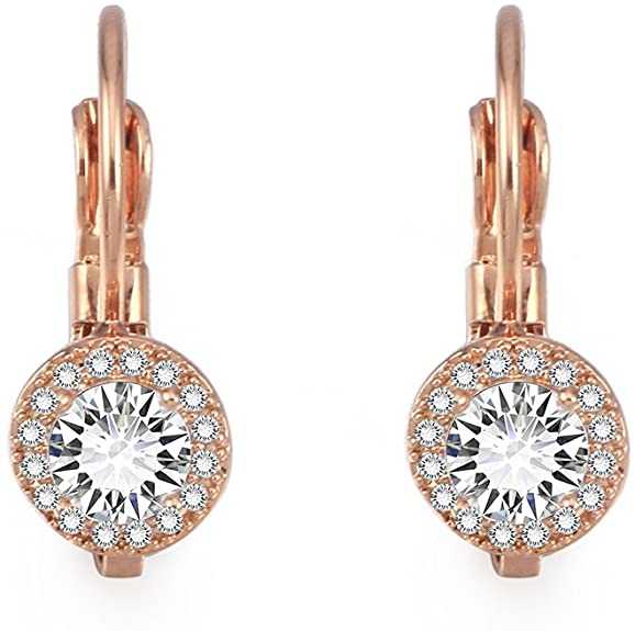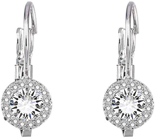 Women's Zirconia Inlaid Hoop Earrings With Lever Back Closure