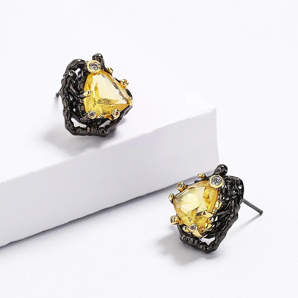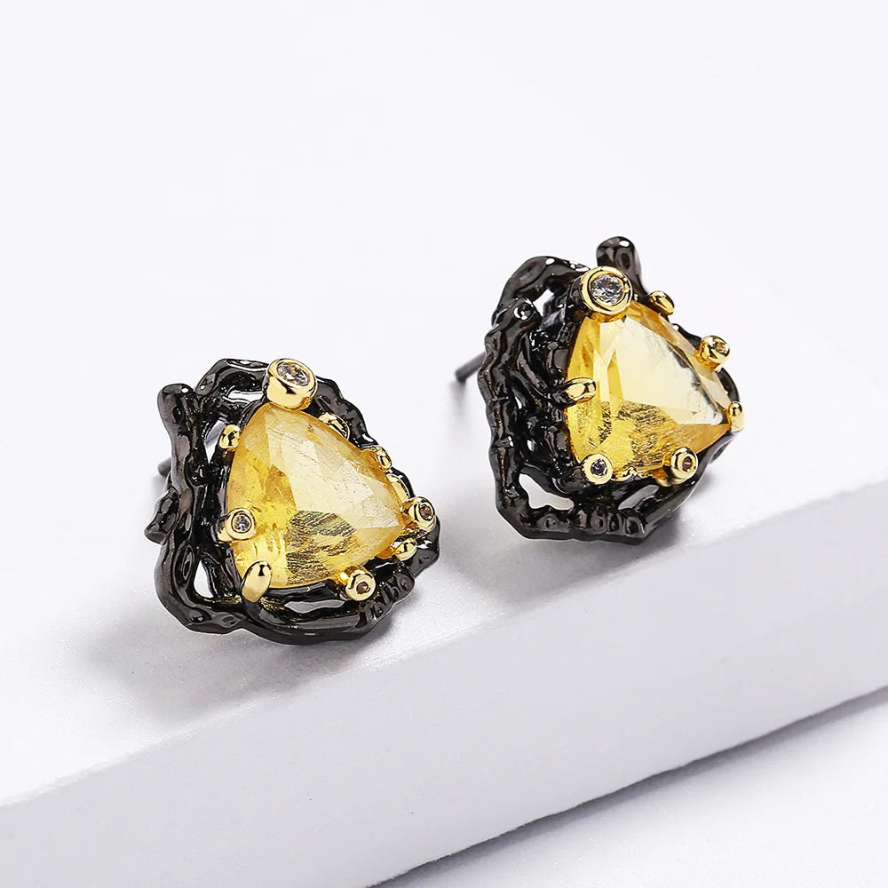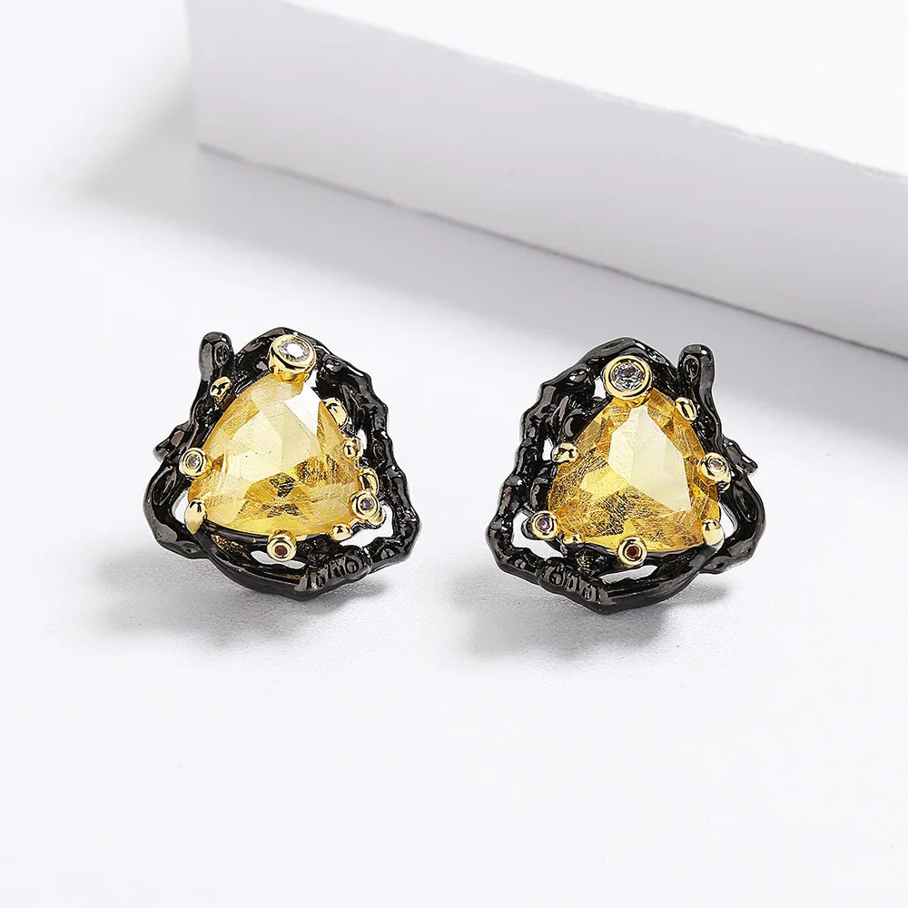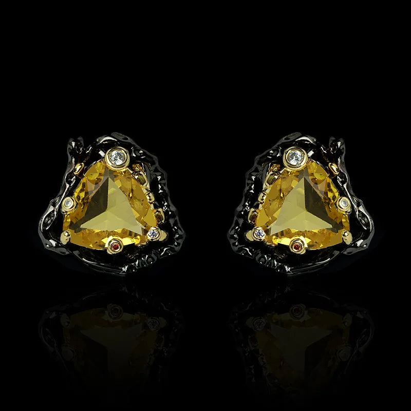 Add a touch of elegance to your party outfit with these delicate yellow triangle zircon earrings. The two-tone design makes them eye-catching and perfect for any special occasion.