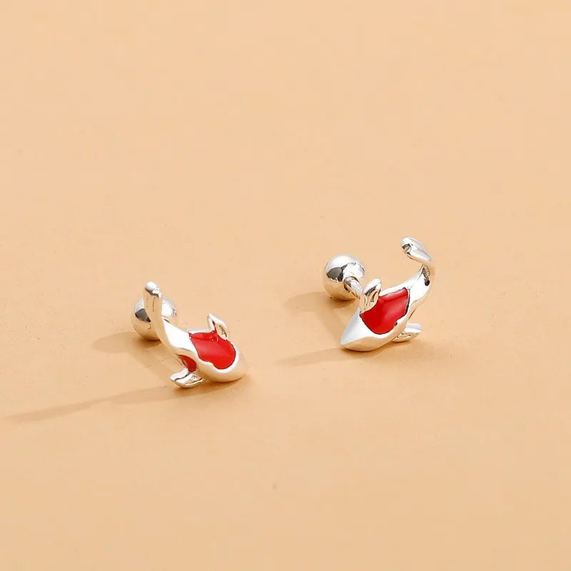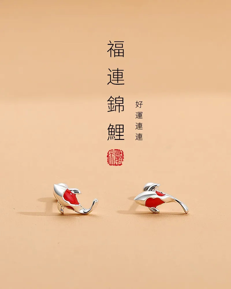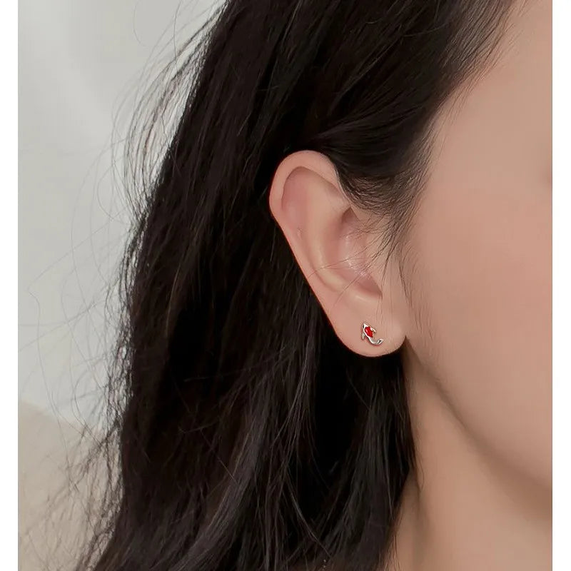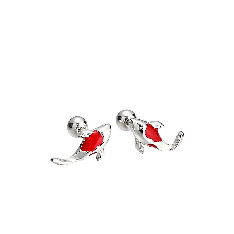 Adorn your ears with these charming red carp fish stud earrings made of high-quality S999 silver.