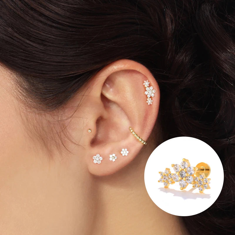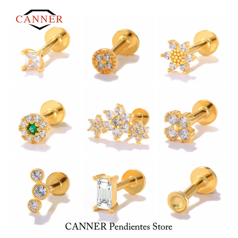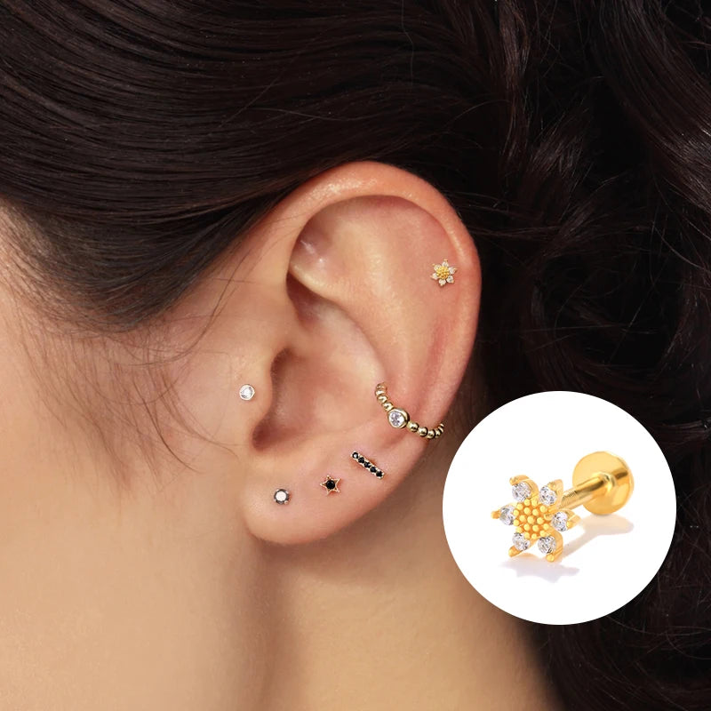 Zircon 925 Silver Plating Stud Earrings for Women Lip Cartilage Jewelry