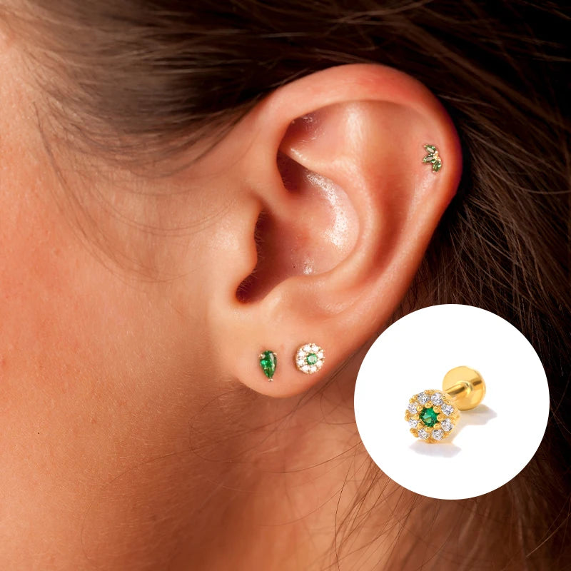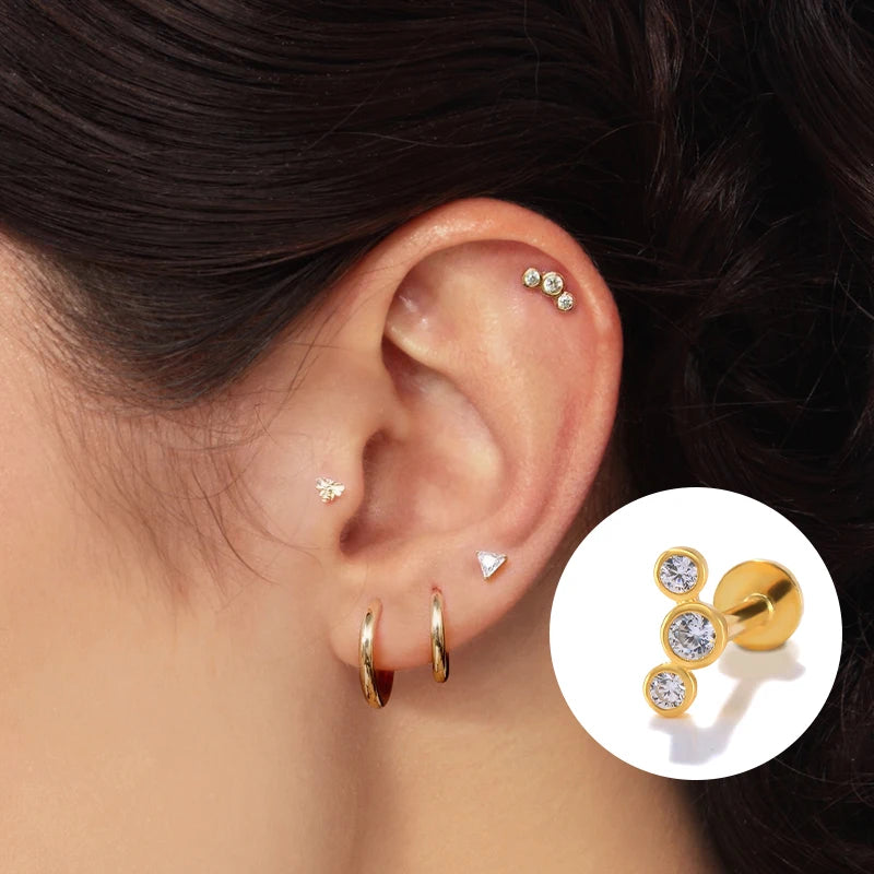 Add a touch of elegance to your look with these sterling silver stud earrings featuring zircon stones. Perfect for labret, lip, or cartilage piercings.