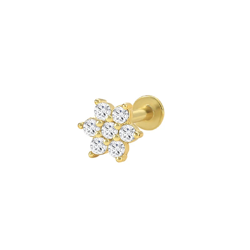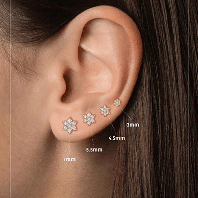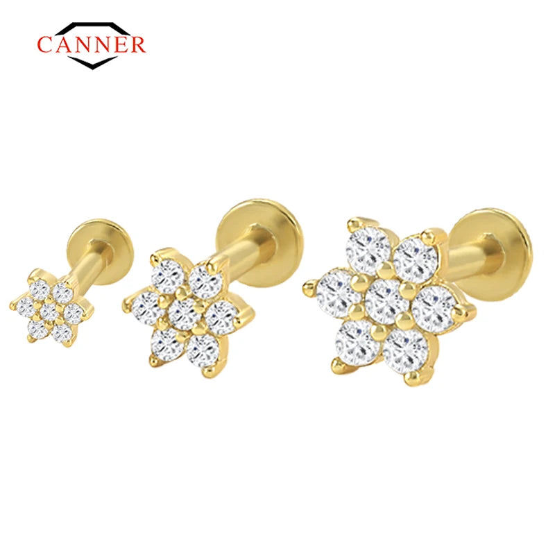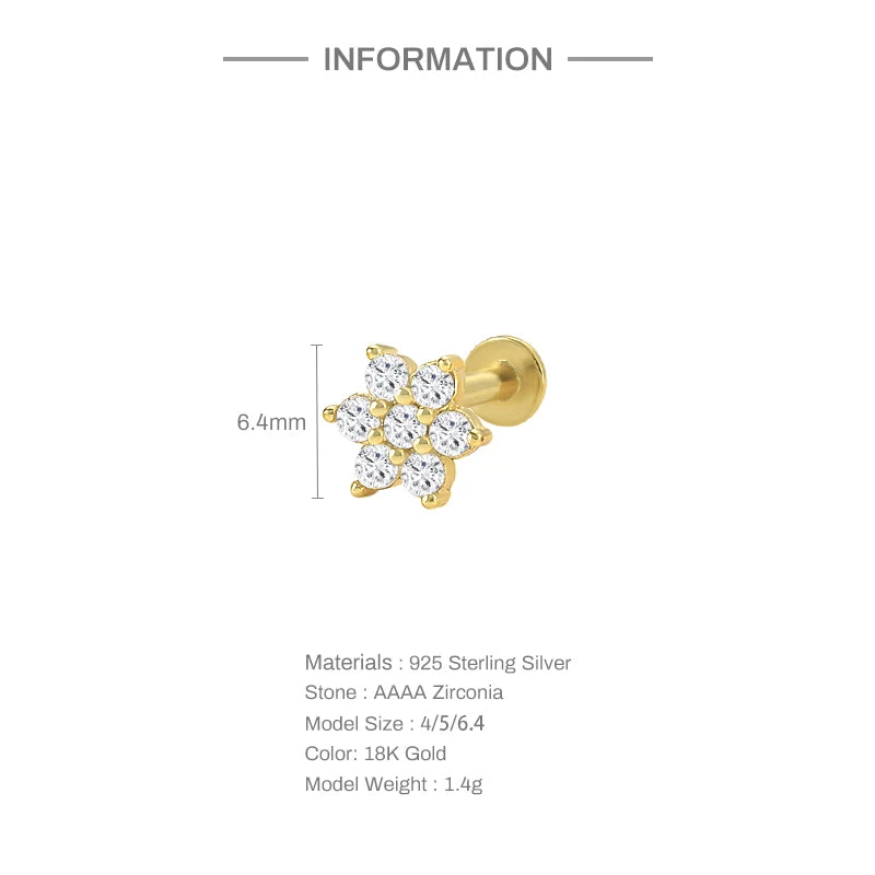 Zircon Flower 925 Silver Cartilage Stud Earrings Women