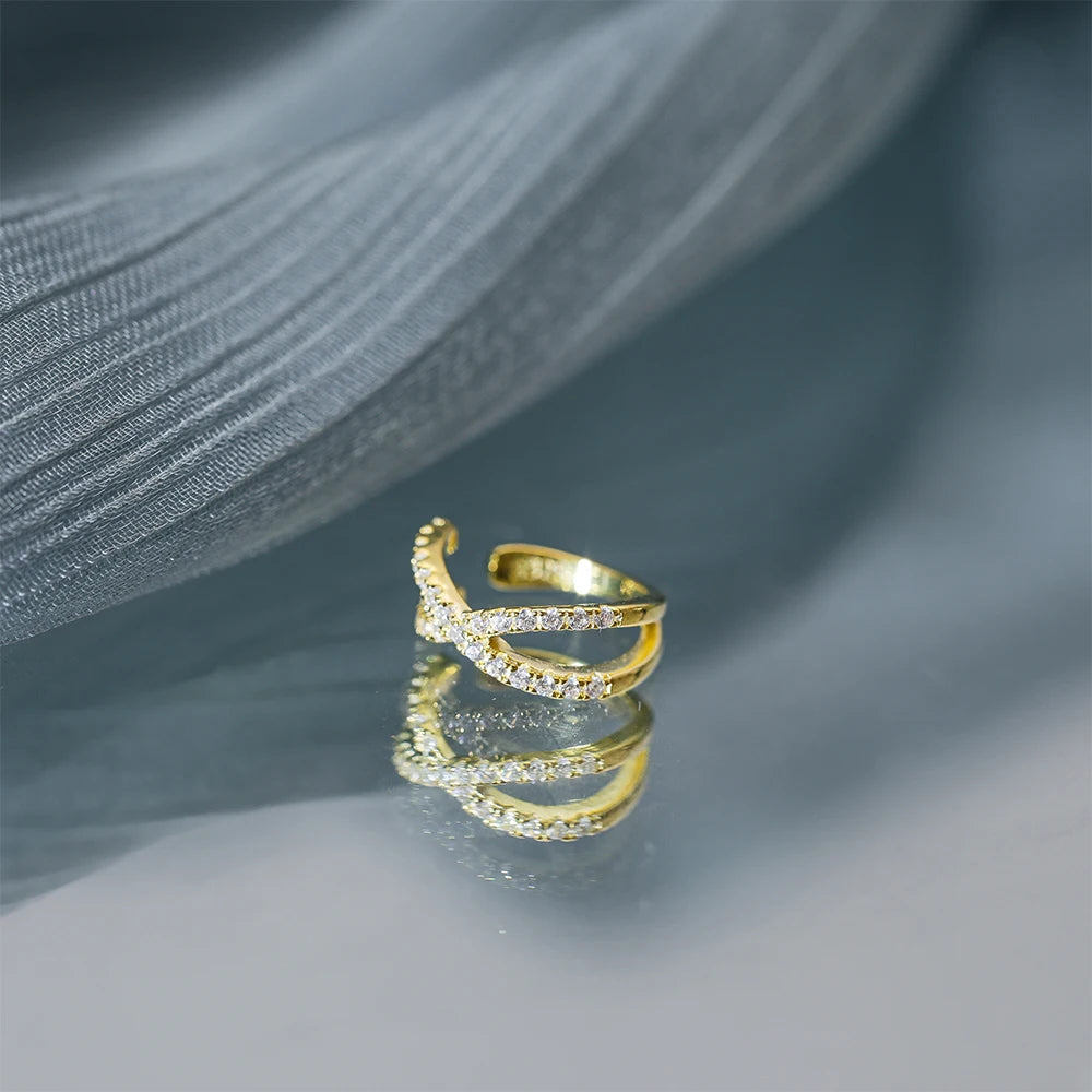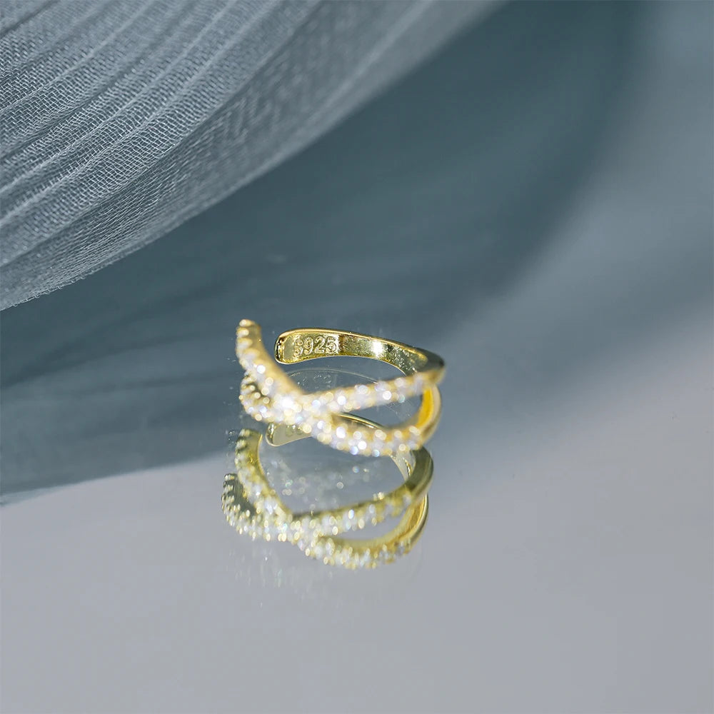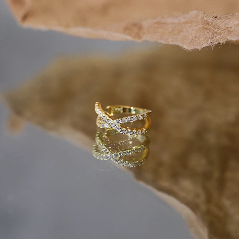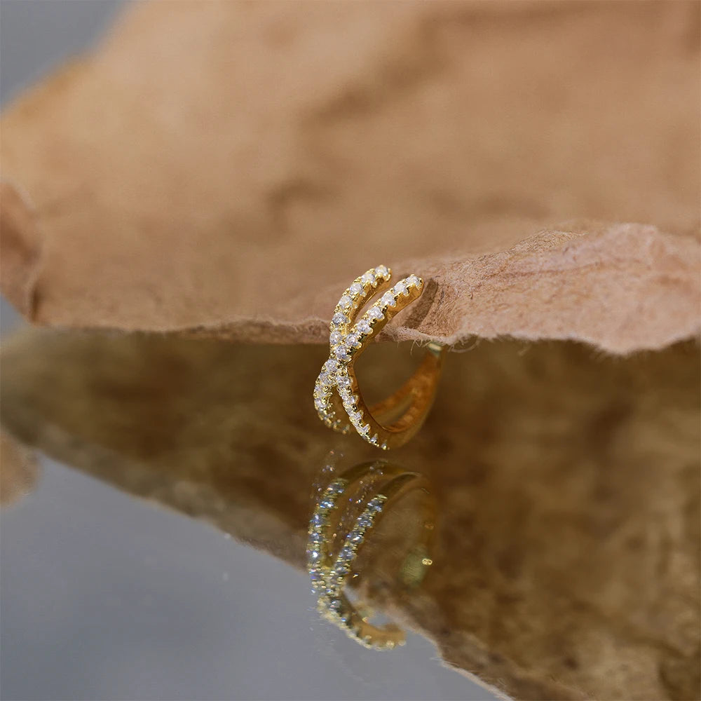 Elevate your party look with these trendy double-layer ear clips featuring zircon and a sterling silver cross design.