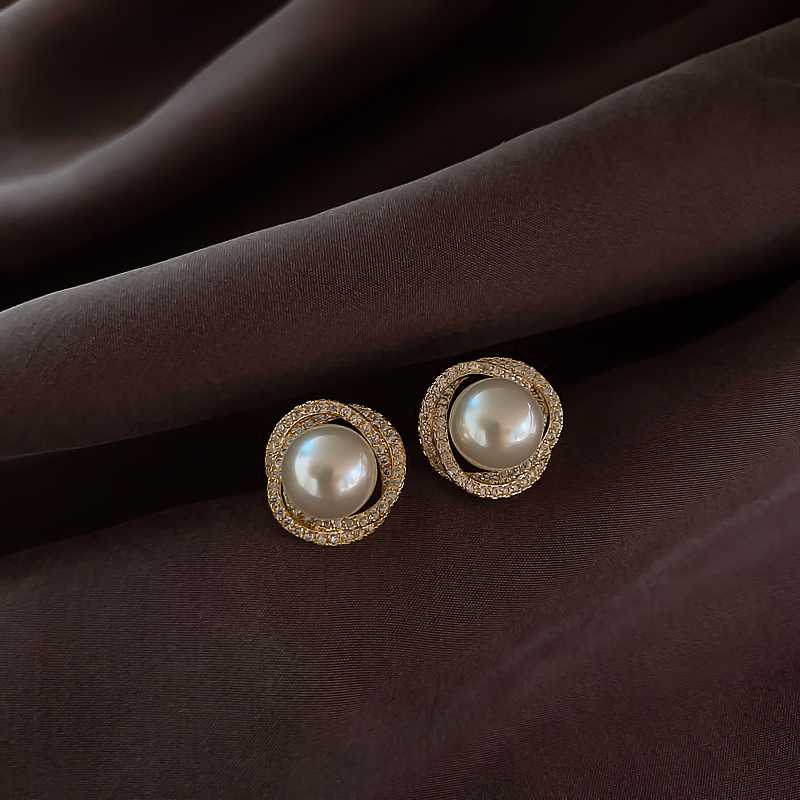 Enhance your jewelry collection with our Zirconia Spiral Pearl Stud Earrings, a blend of vintage elegance and modern flair. These exquisite earrings feature a spiral design adorned with sparkling cubic zirconia stones and luminous pearls, making them a perfect statement piece for any occasion. Crafted with high quality gold plating, they offer a luxurious finish while remaining lightweight and comfortable for everyday wear. Ideal for both women and girls, these earrings effortlessly elevate any outfit, from casual looks to formal attire. Make a statement and showcase your unique style with these timeless earrings.