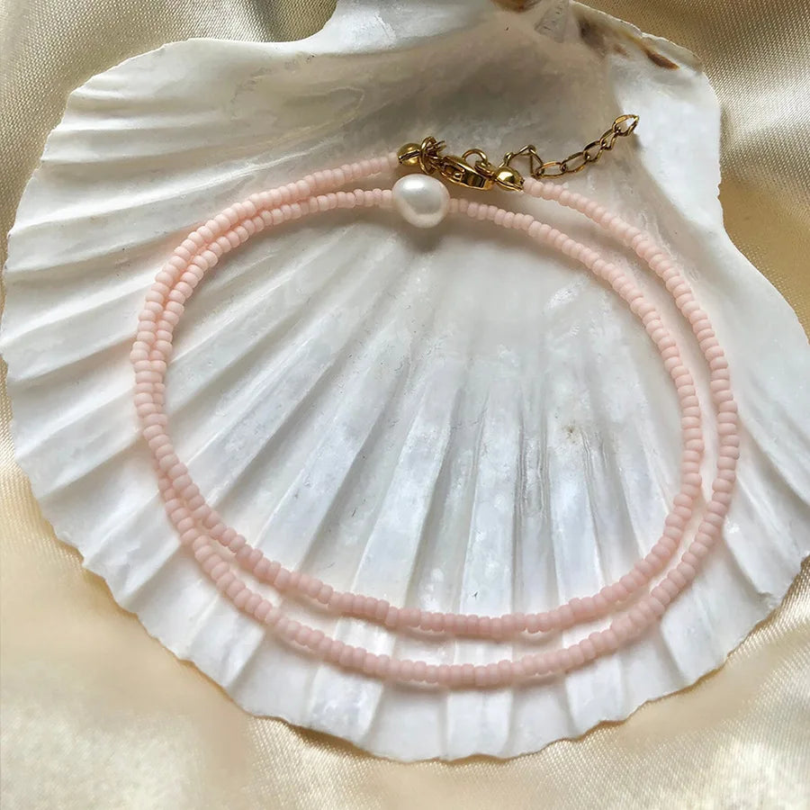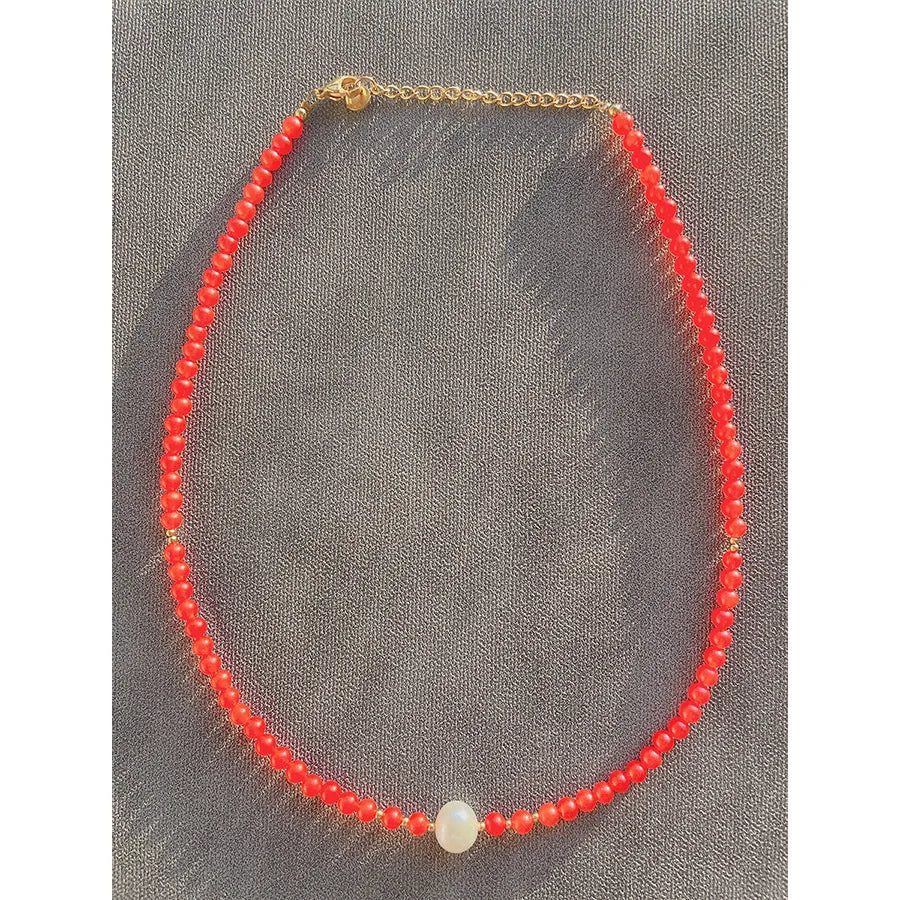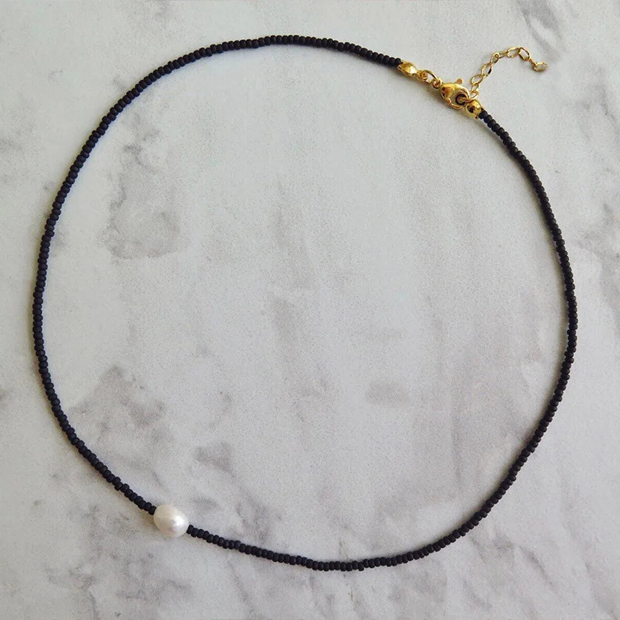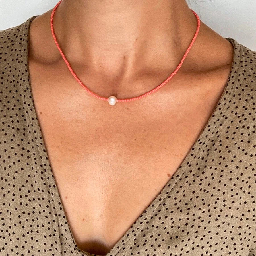 Add a pop of color to your outfit with this stunning choker necklace featuring colorful glass beads and a baroque pearl charm. The necklace is made with natural freshwater pearls and is finished with a secure 18K gold-filled clasp.