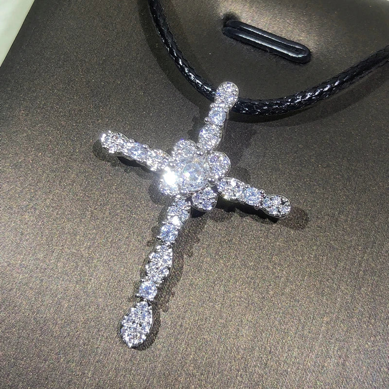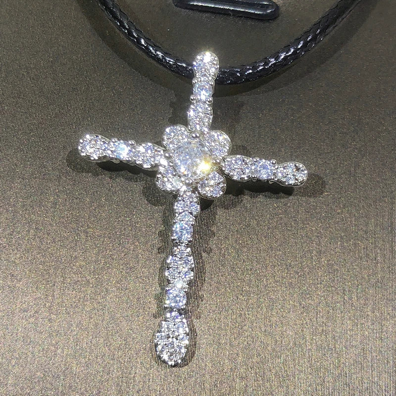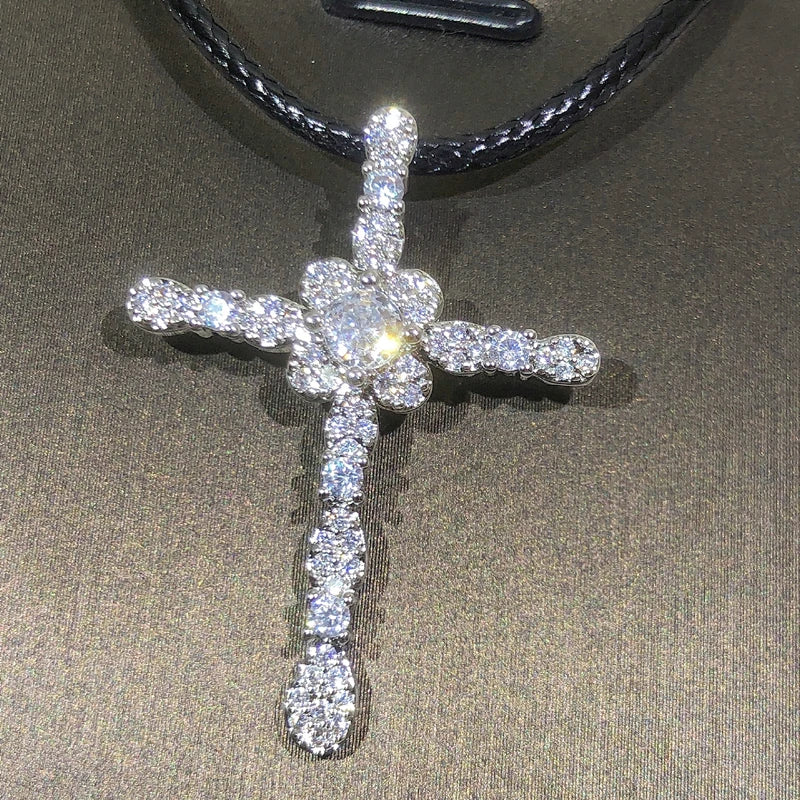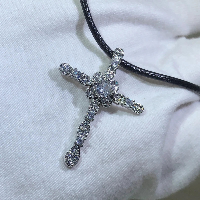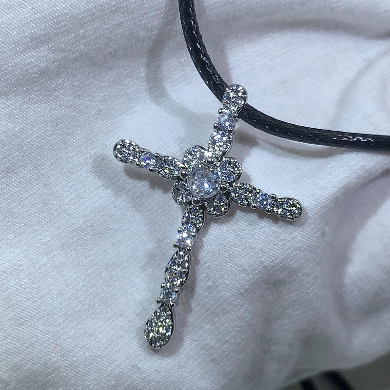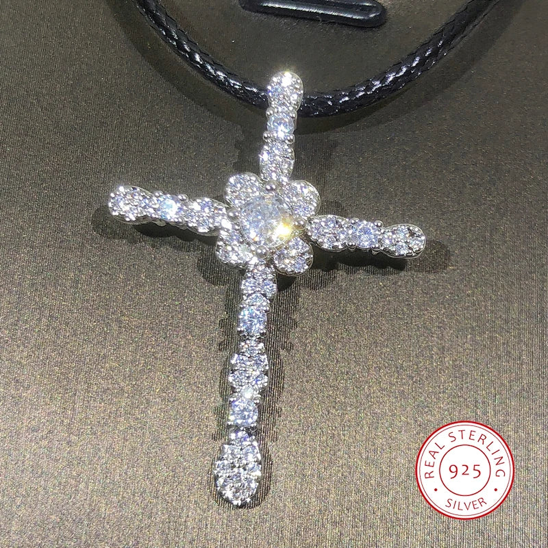 925 Silver Crystal Cross Necklace for Women
