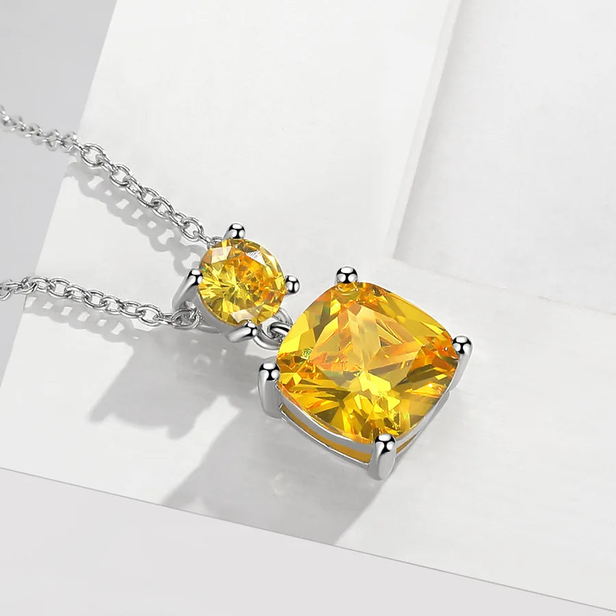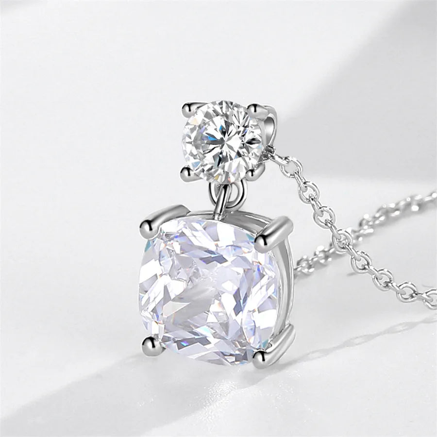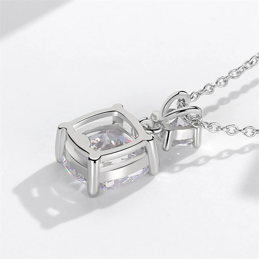 925 Silver Crystal Necklace 9MM Cushion Pendant for Women