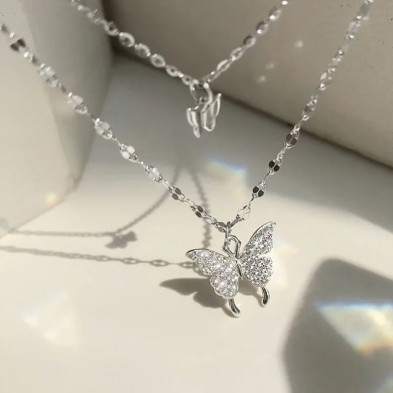 Add a touch of elegance with this stunning double butterfly necklace made of high quality 925 sterling silver. Perfect for women who love delicate and feminine jewelry.