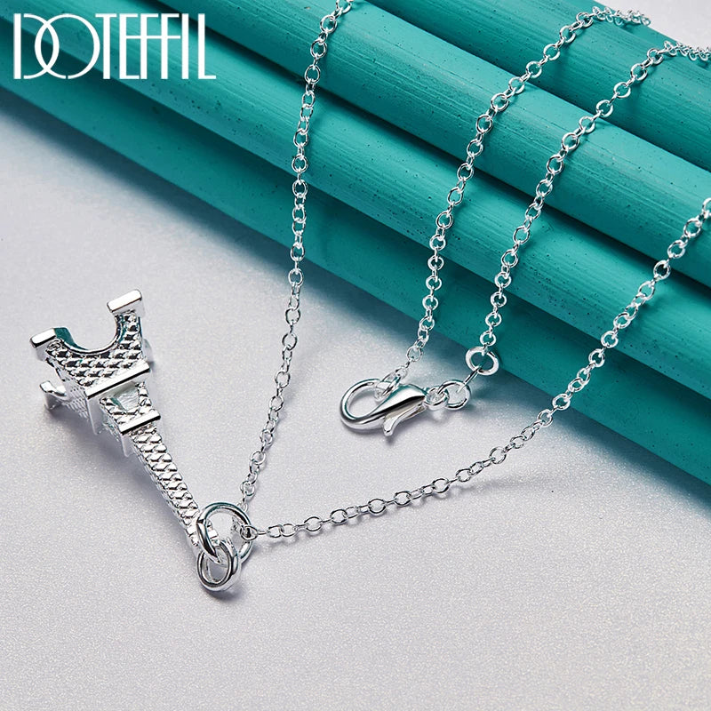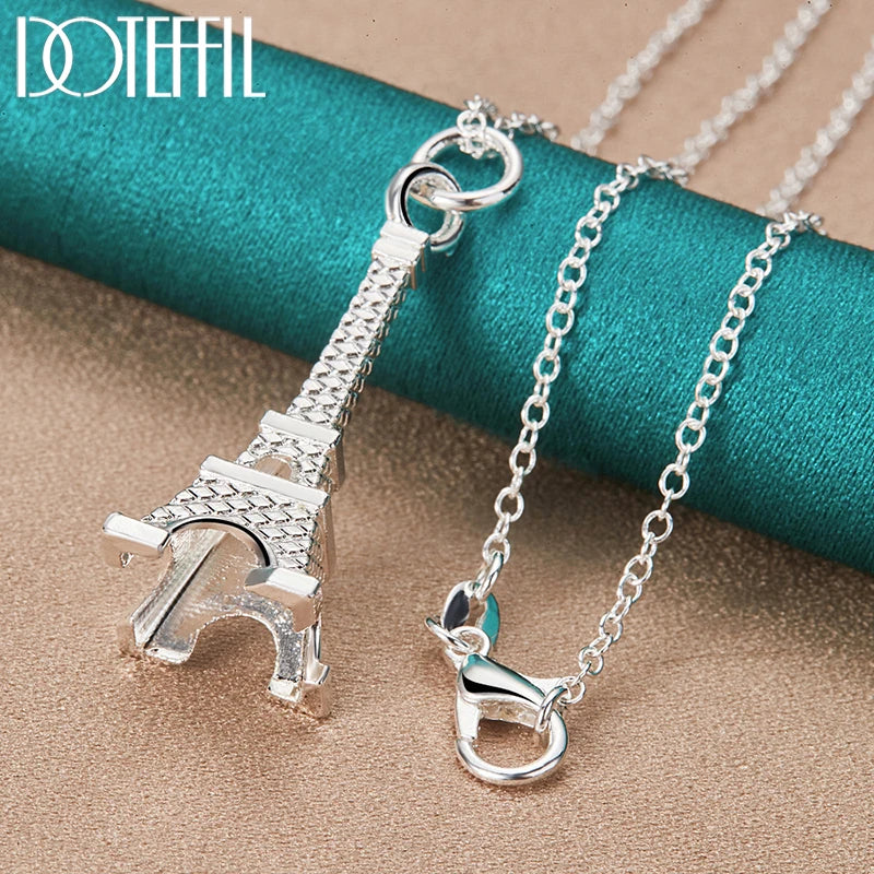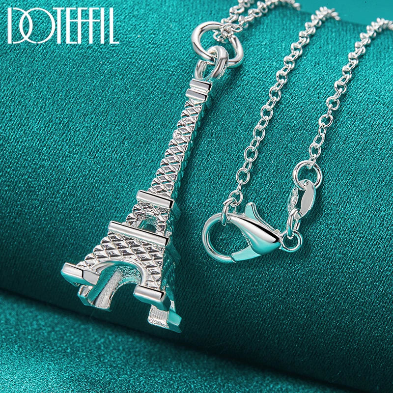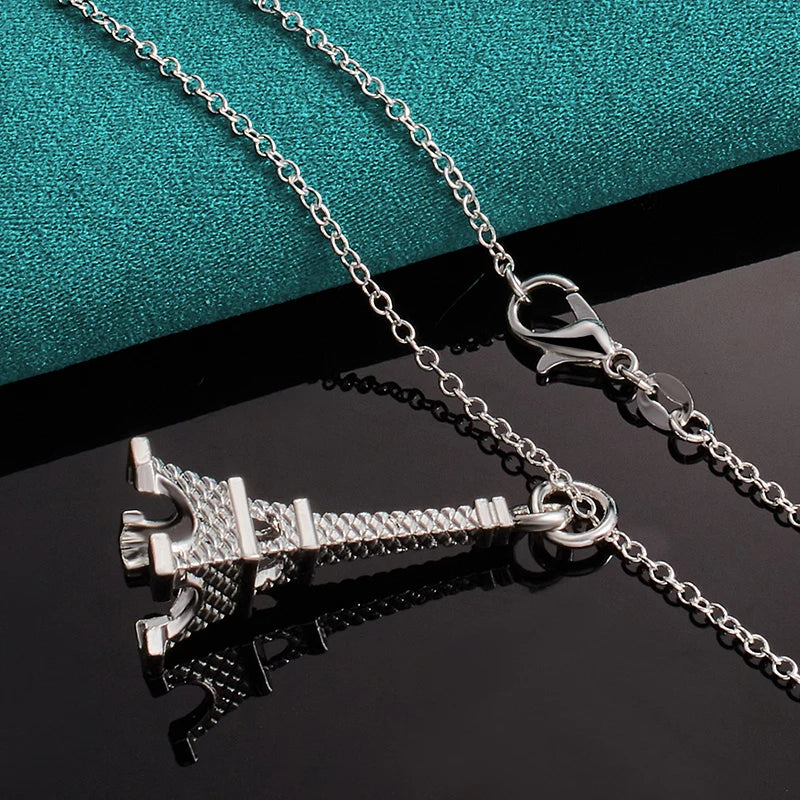 This elegant necklace features a 925 sterling silver Eiffel Tower pendant, perfect for weddings and engagements. The chain length is adjustable from 16 to 30 inches.